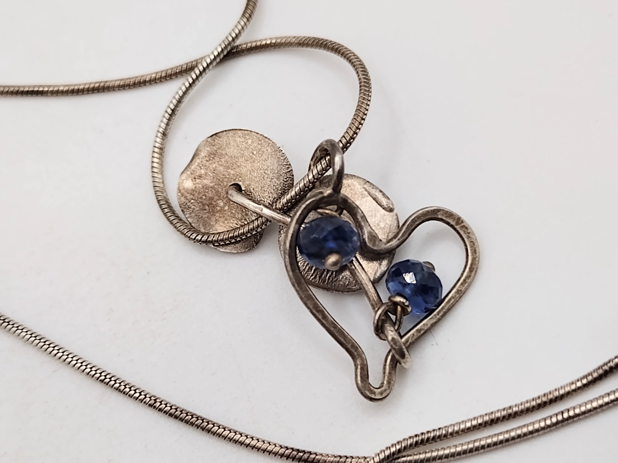 Star 899 VI sterling silver necklace topaz heart pendant 6.6G