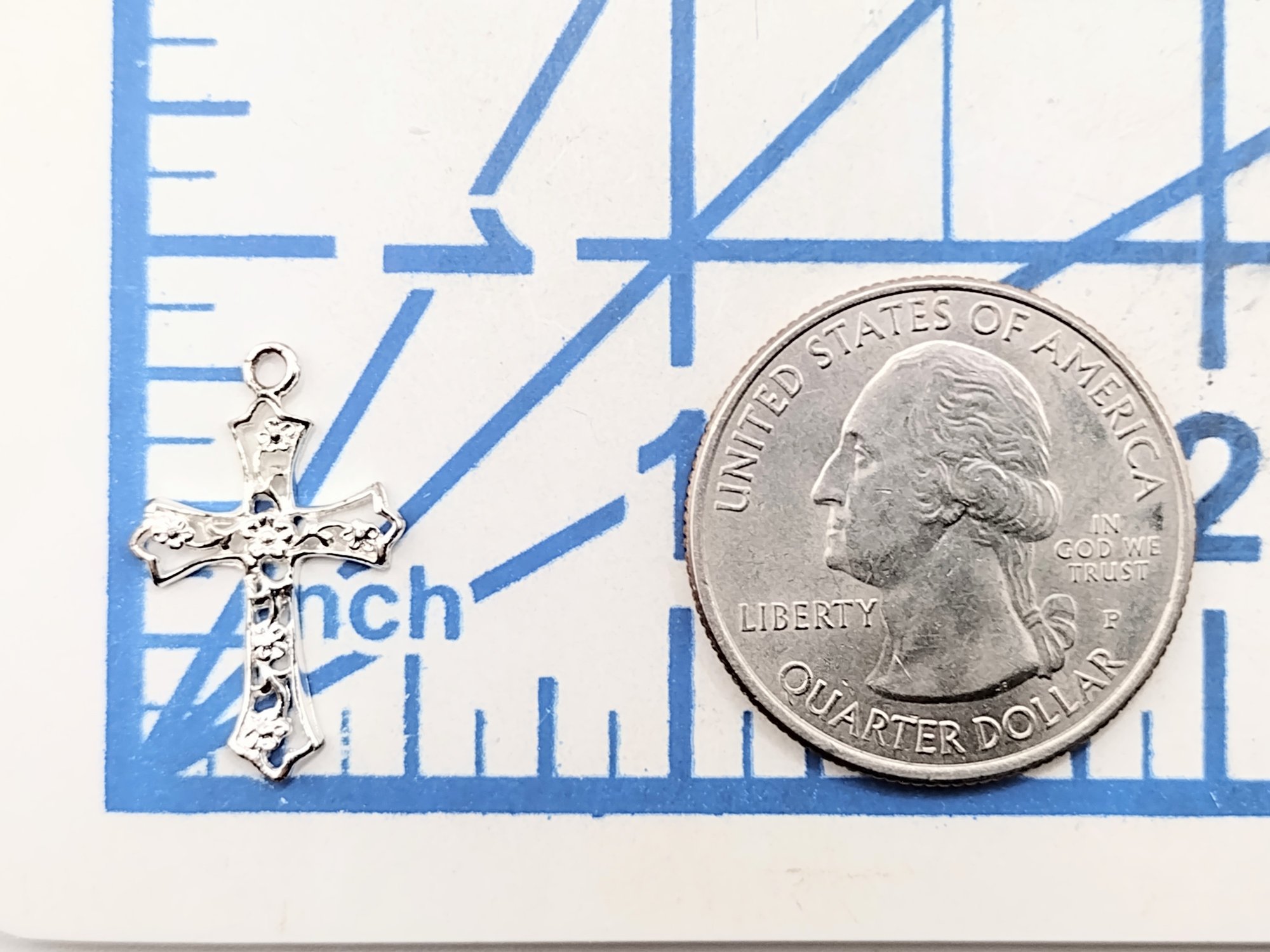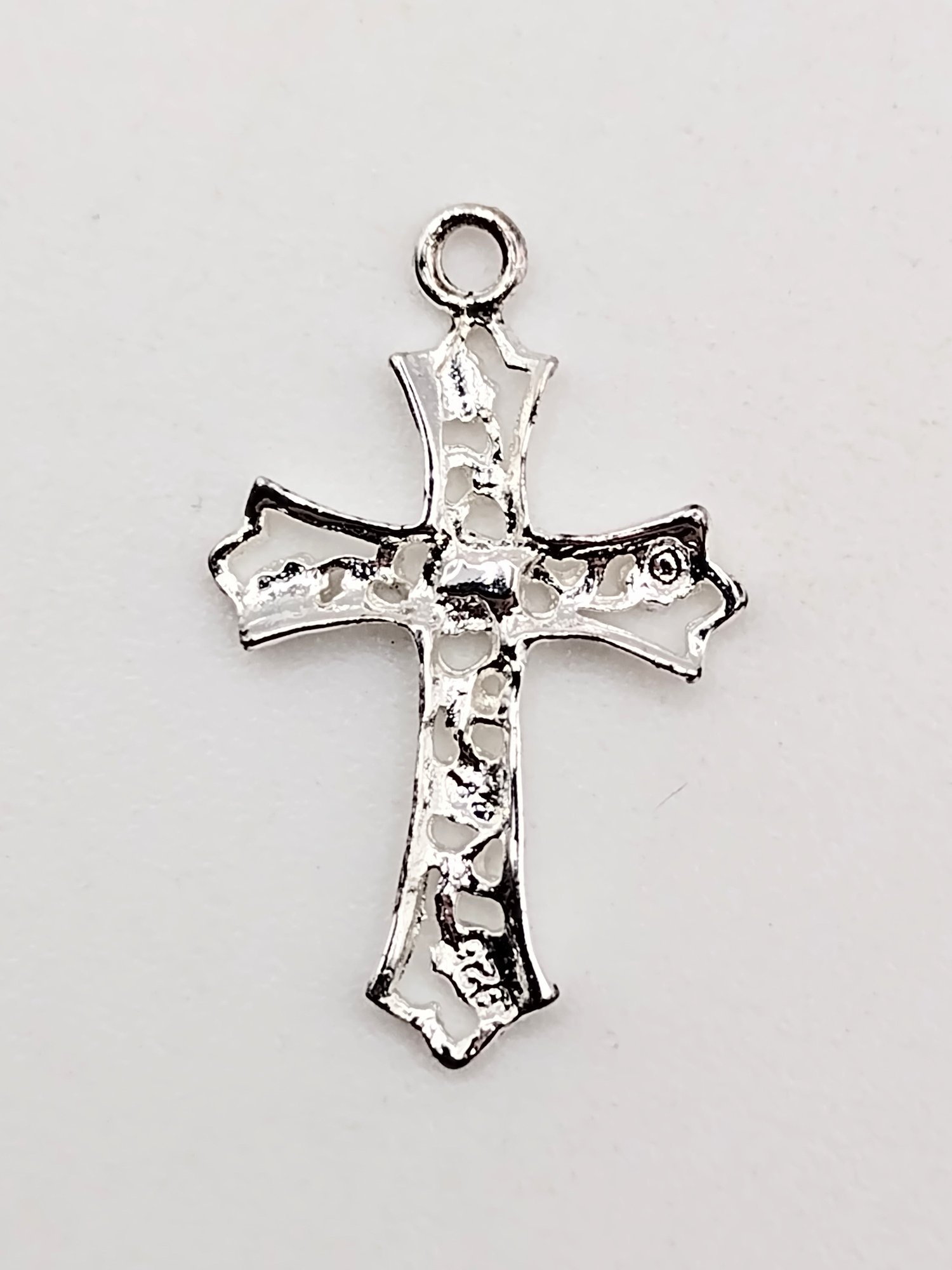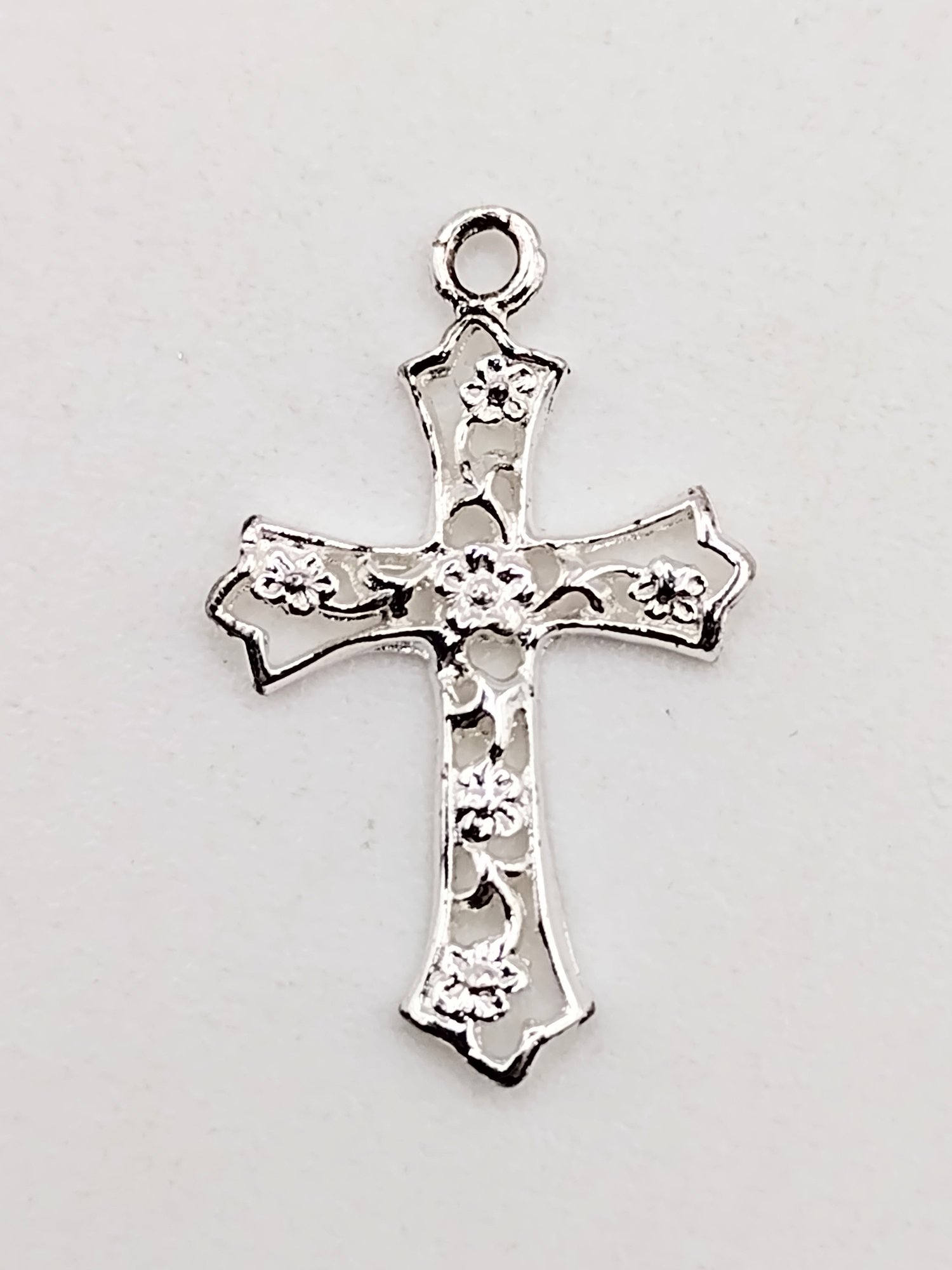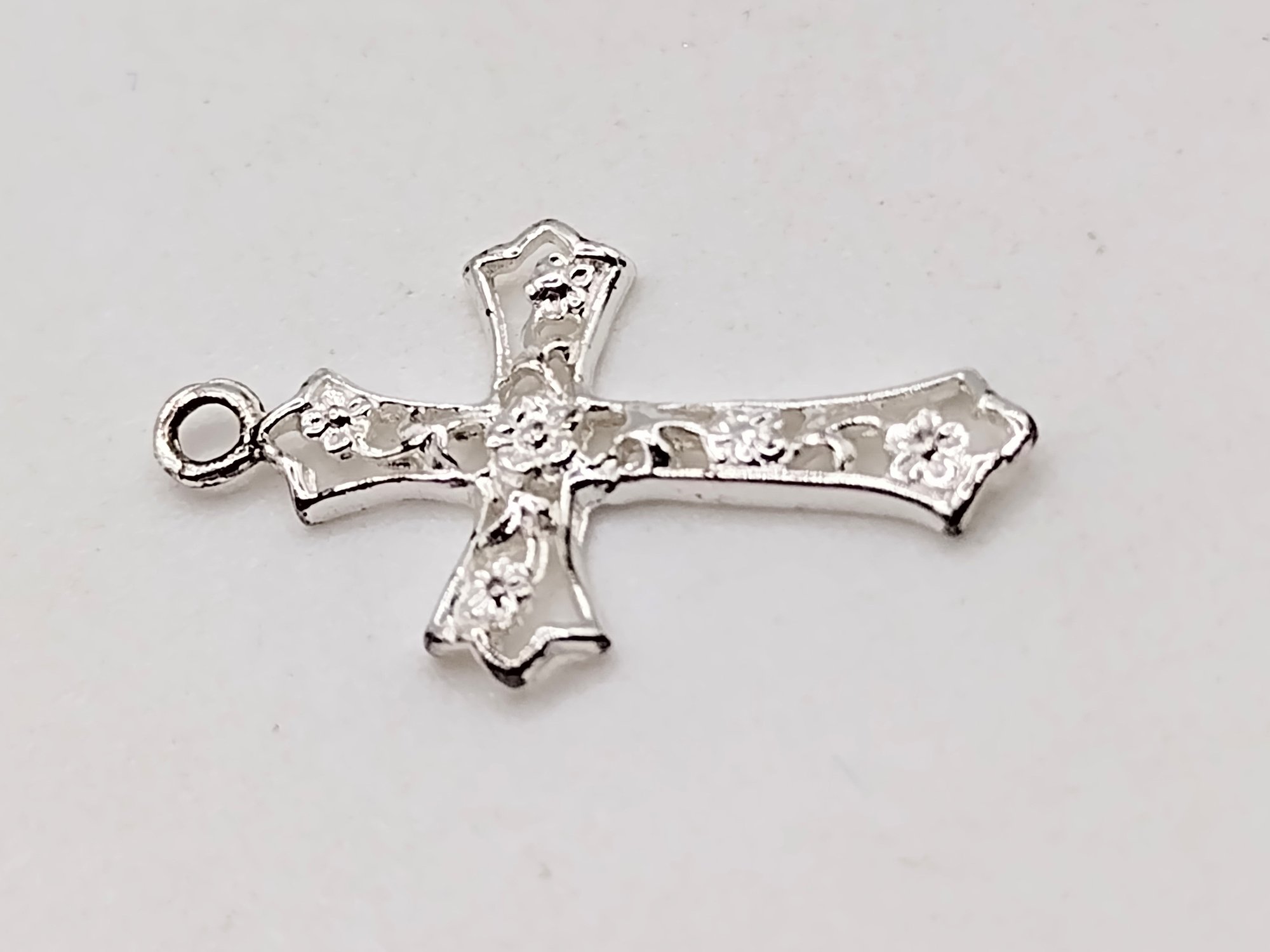 Sterling silver floral cross pendant under 0.5G