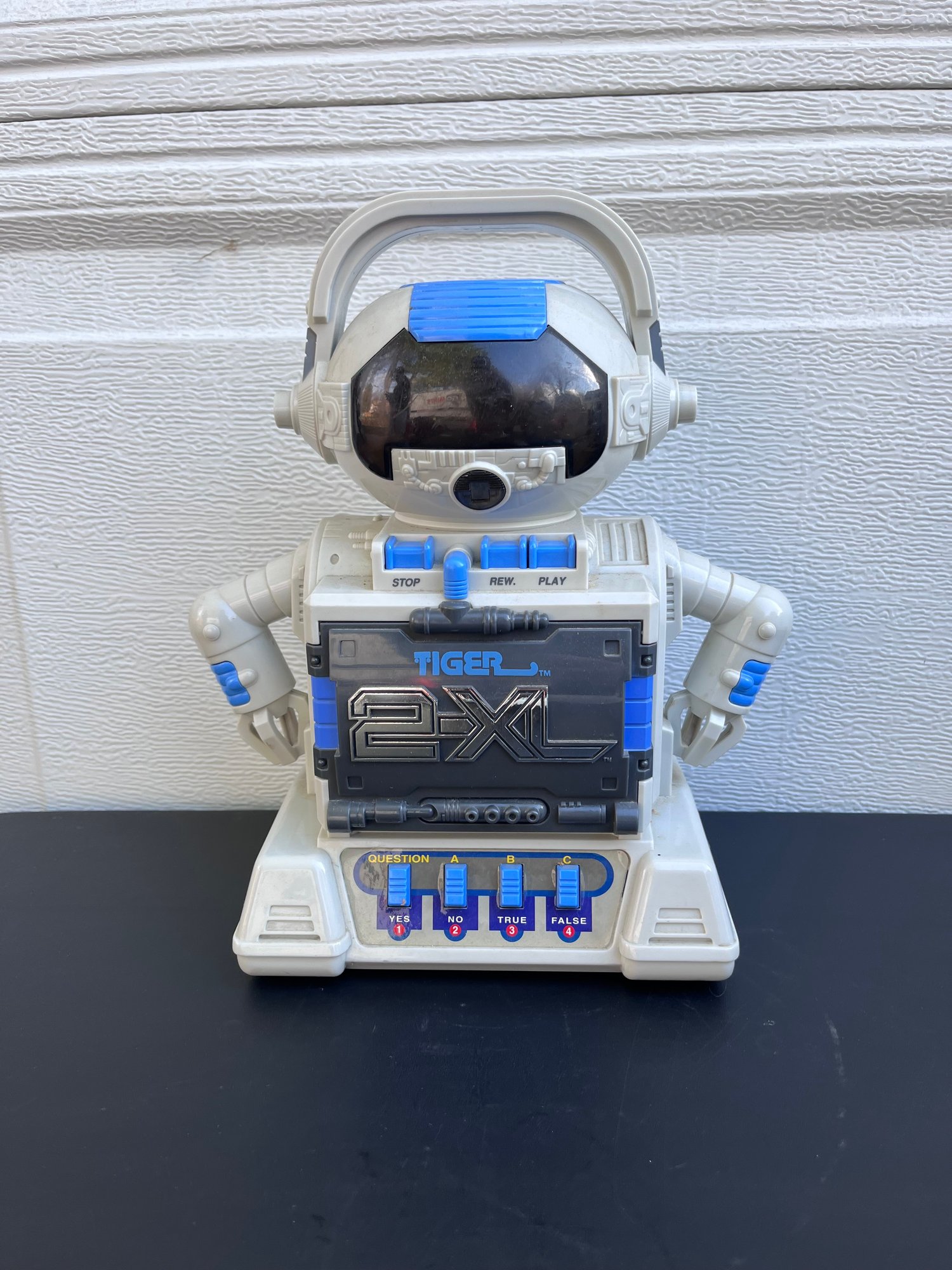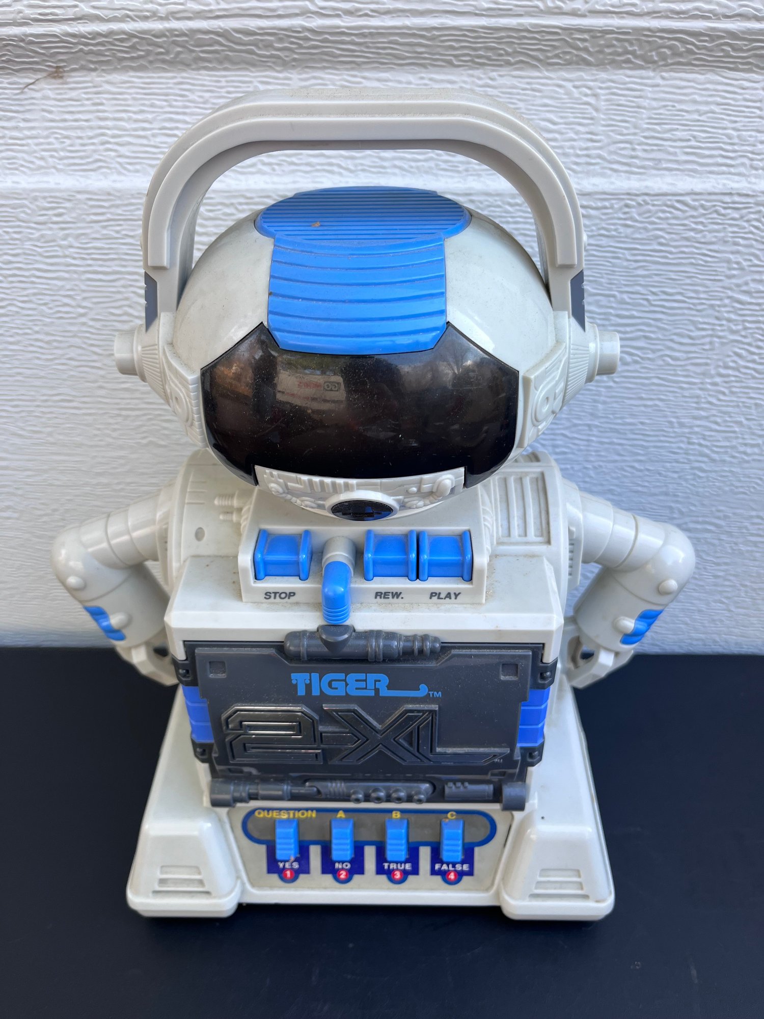 1990s Tiger 2-XL Talking Robot, a popular educational toy that interacts with users through audio cassette tapes.
