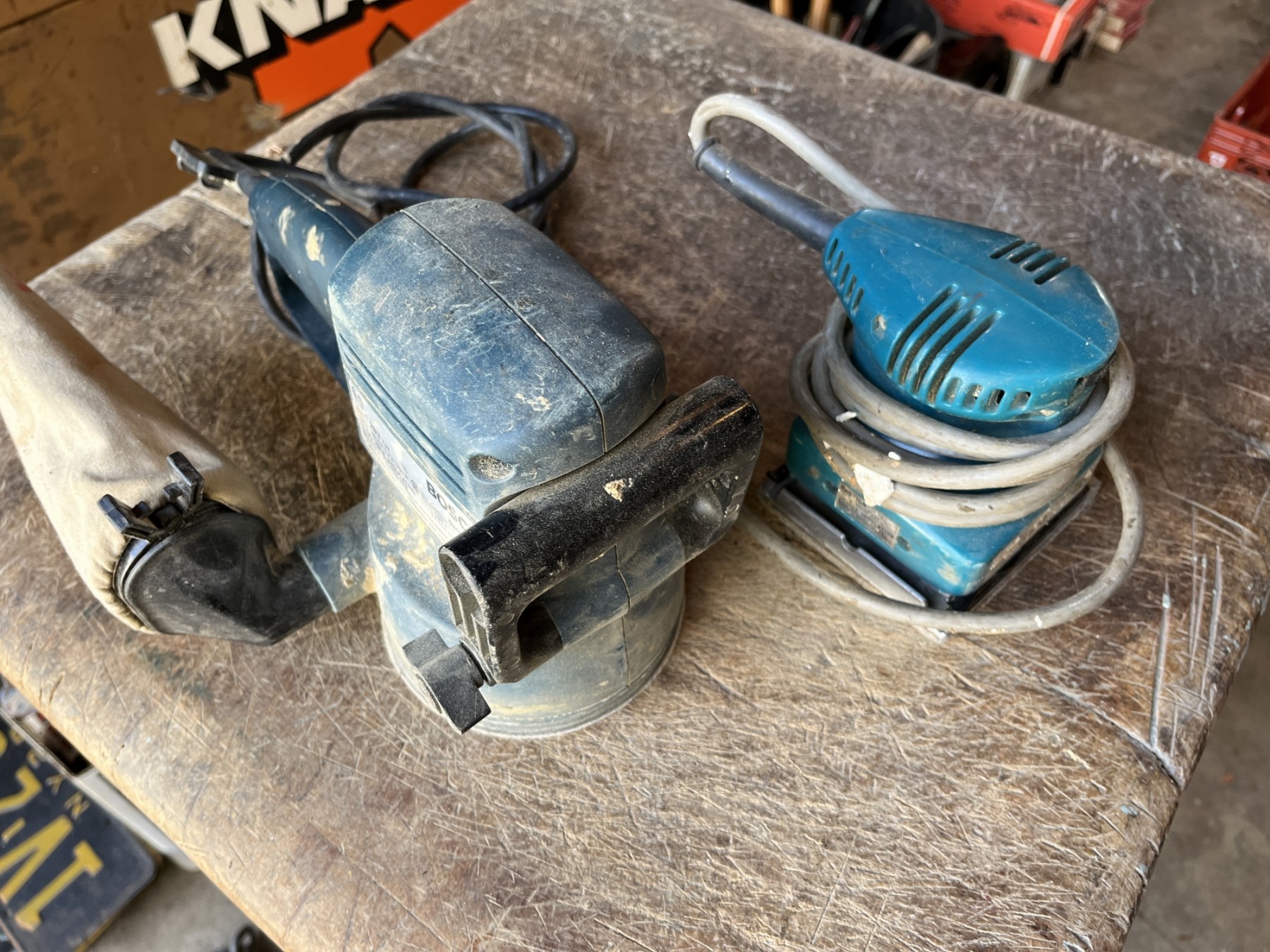 Makita model B04510 and Bosch finishing sanders. Have wear and tear but both function as they should.
