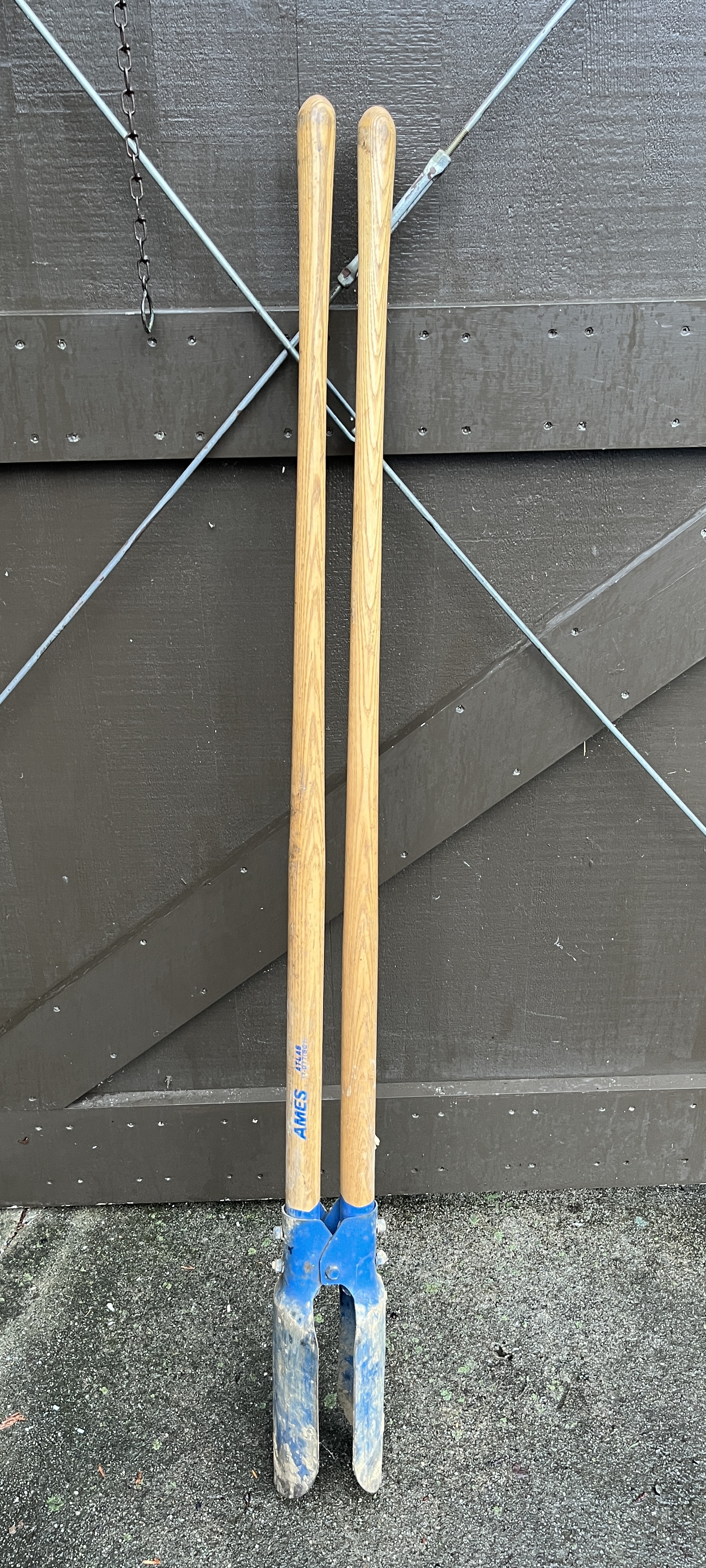Ideal for digging holes when installing a fence post mailbox basketball hoop and more with a 5.5 inch point spread. Two-piece riveted high carbon Steel blades with beveled digging edge with North American hardwood handles.
