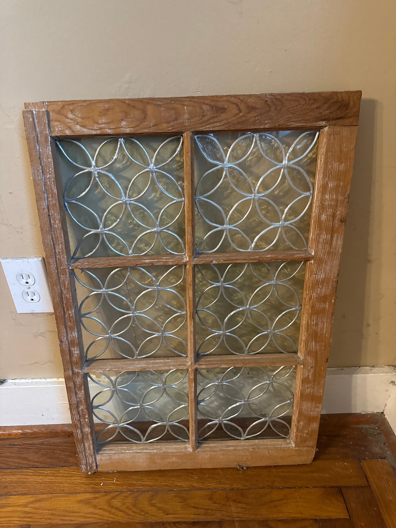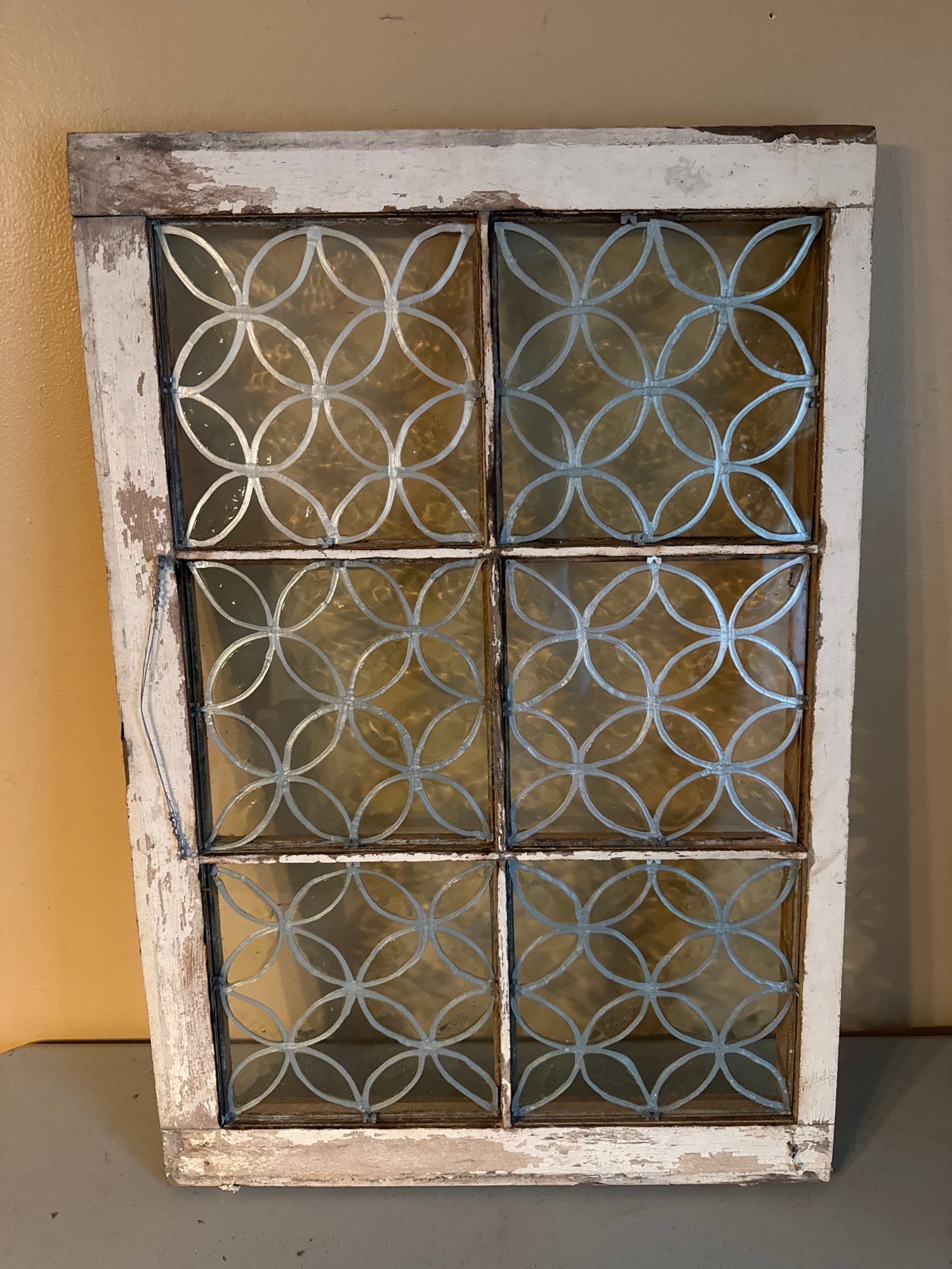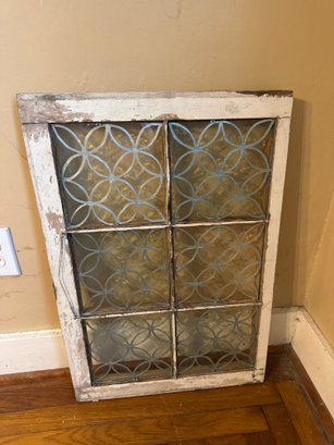 Antique Architectural Salvage Window, Featuring Clear Leaded Or Stained Glass With floral design