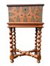 Measures 21.75 inches across by 12.5 inches deep by 28 inches high. Comes with key, but locking mechanism does not function. Overall good condition for its age.