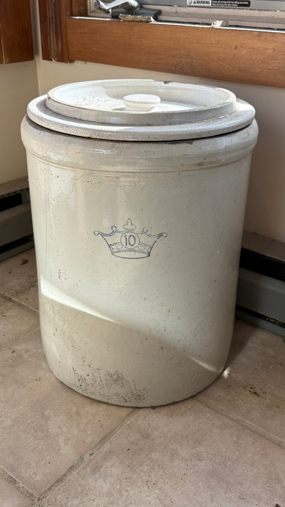 Crock is 14 1/2 inches wide and 17 1/2 inches high.