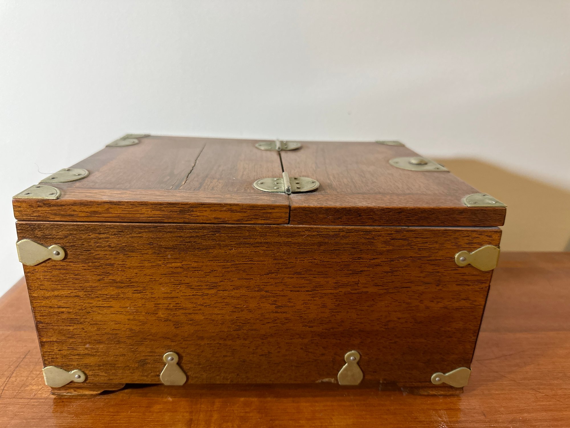 Antique Gentlemen’s Traveling Vanity Grooming / Jewelry Wooden Box with Accented Brass Hardware