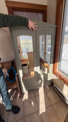 Wardrobe does not have a key. Doors do not stay shot without the key- will require some adjustments.