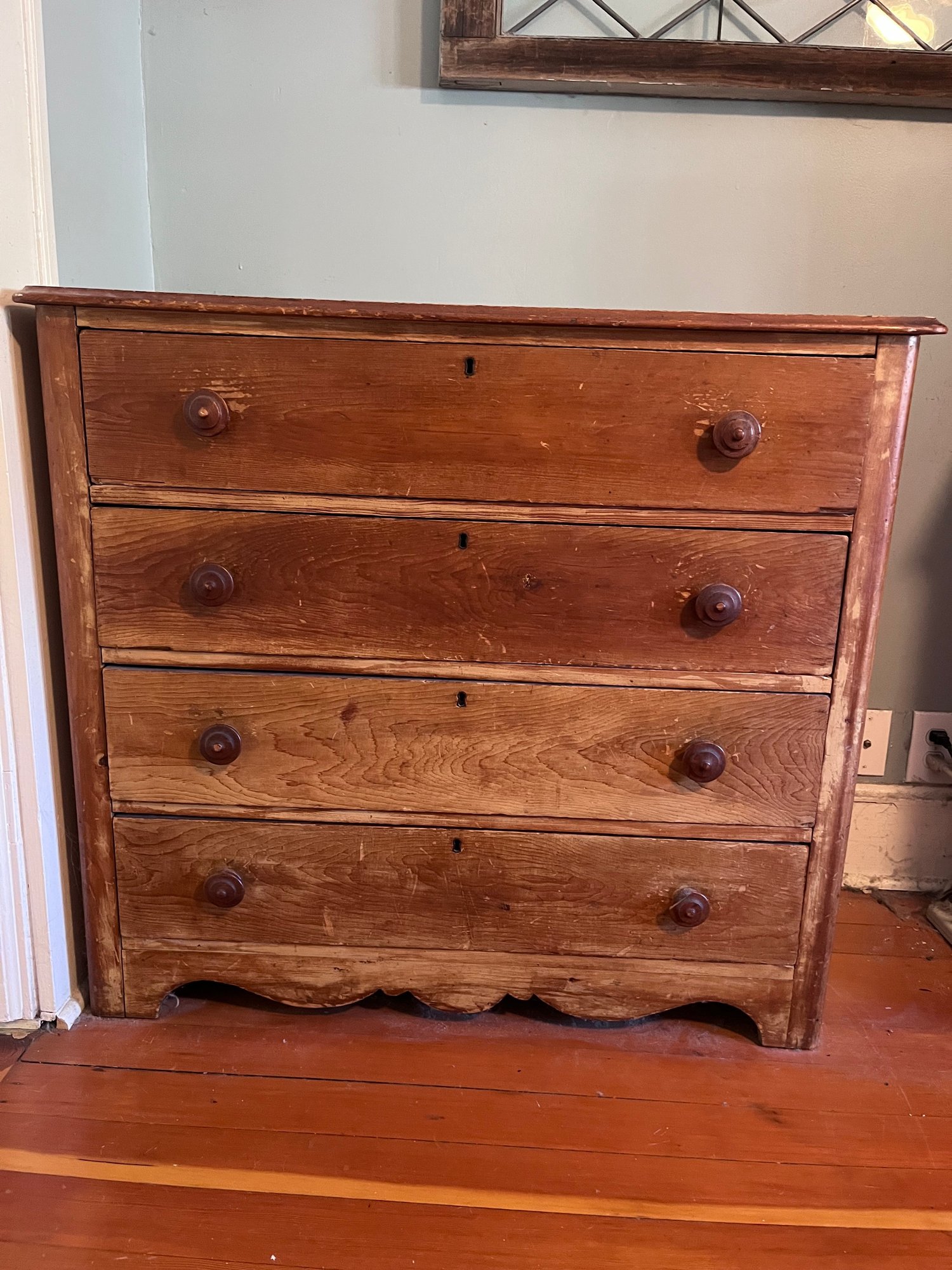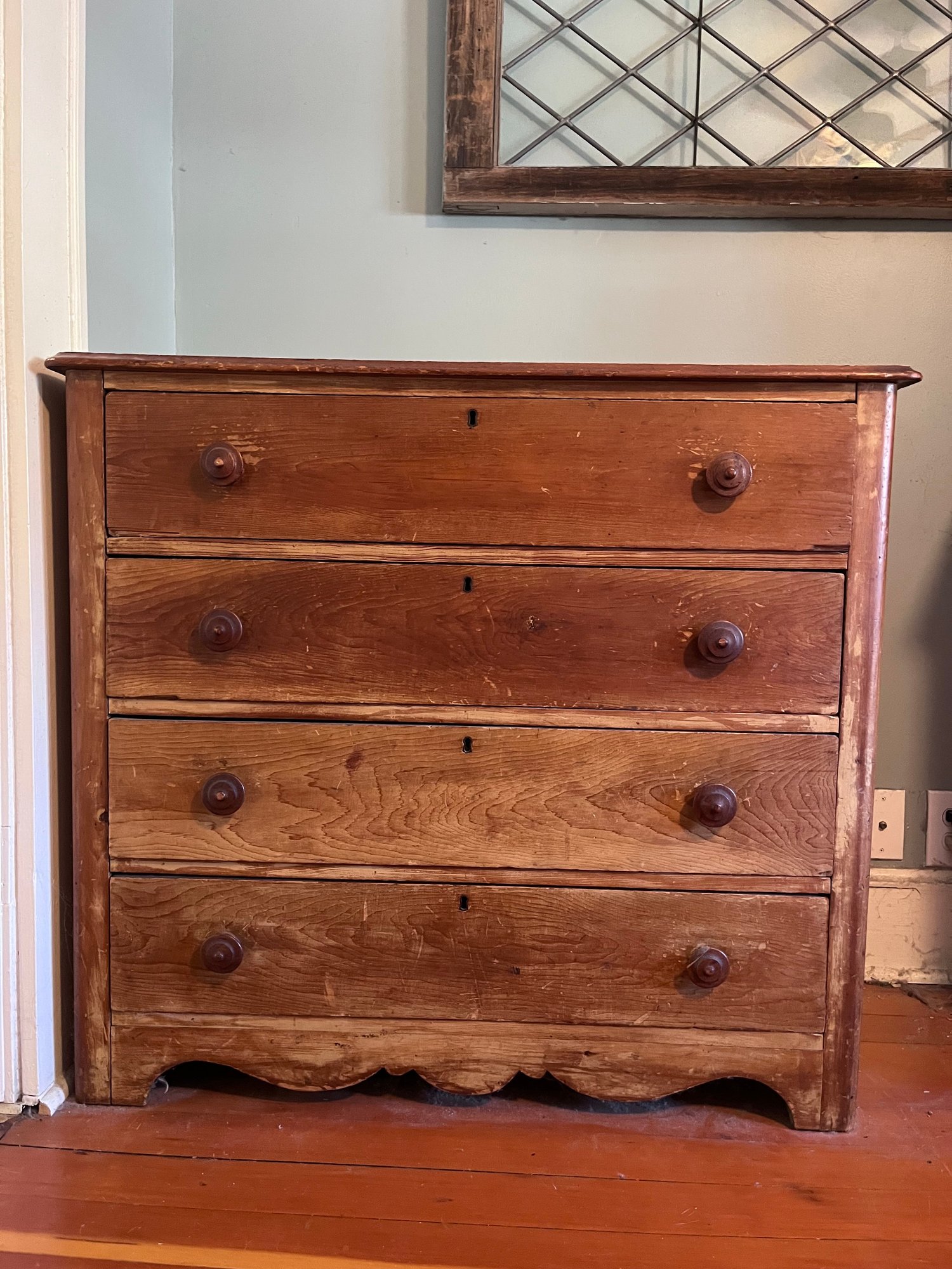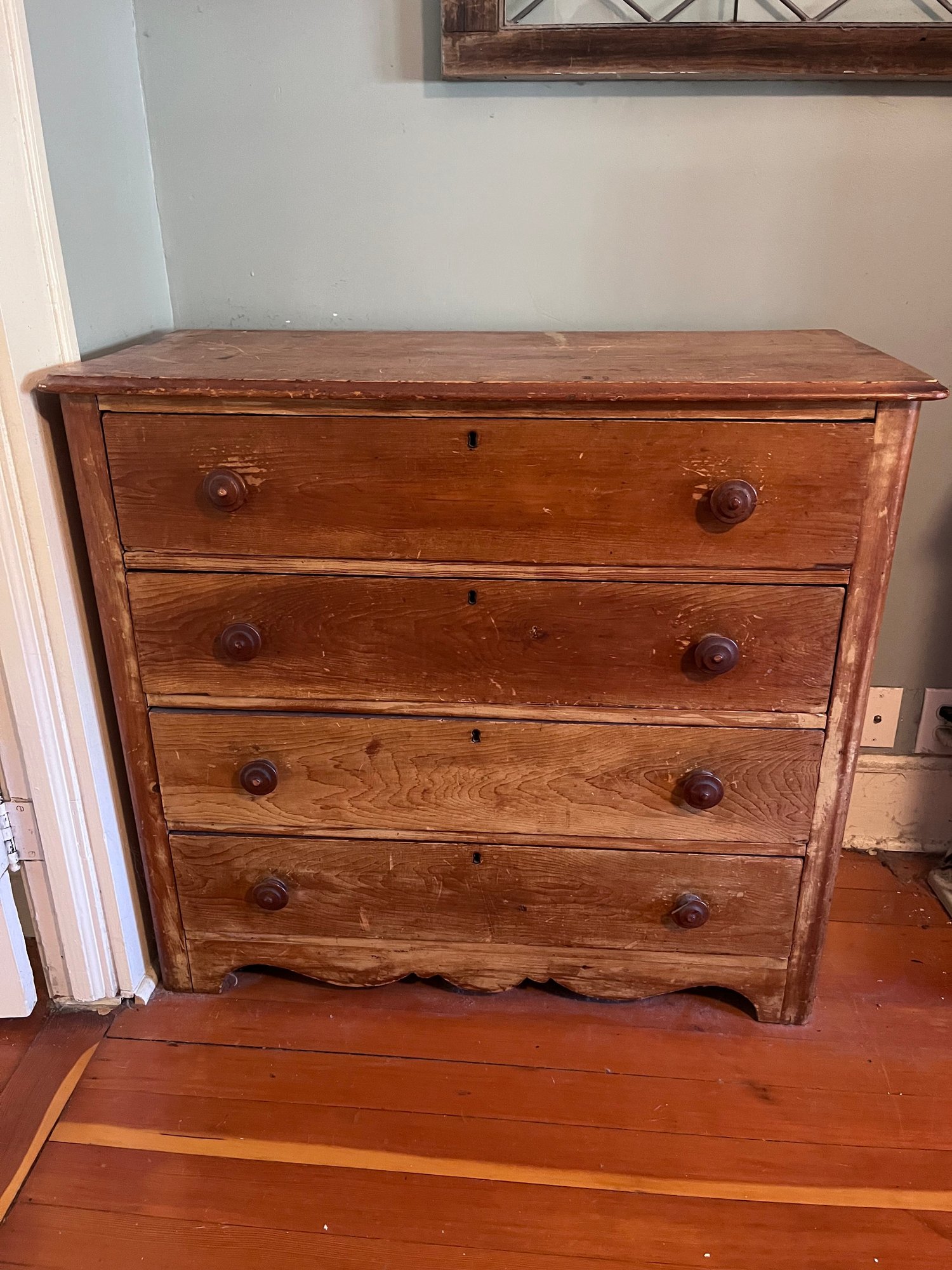 It features four drawers with original locks (though no key is present) and pegged joinery.