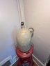 Condition: The jug has a significant crack running down the front and some chipping around the top opening.