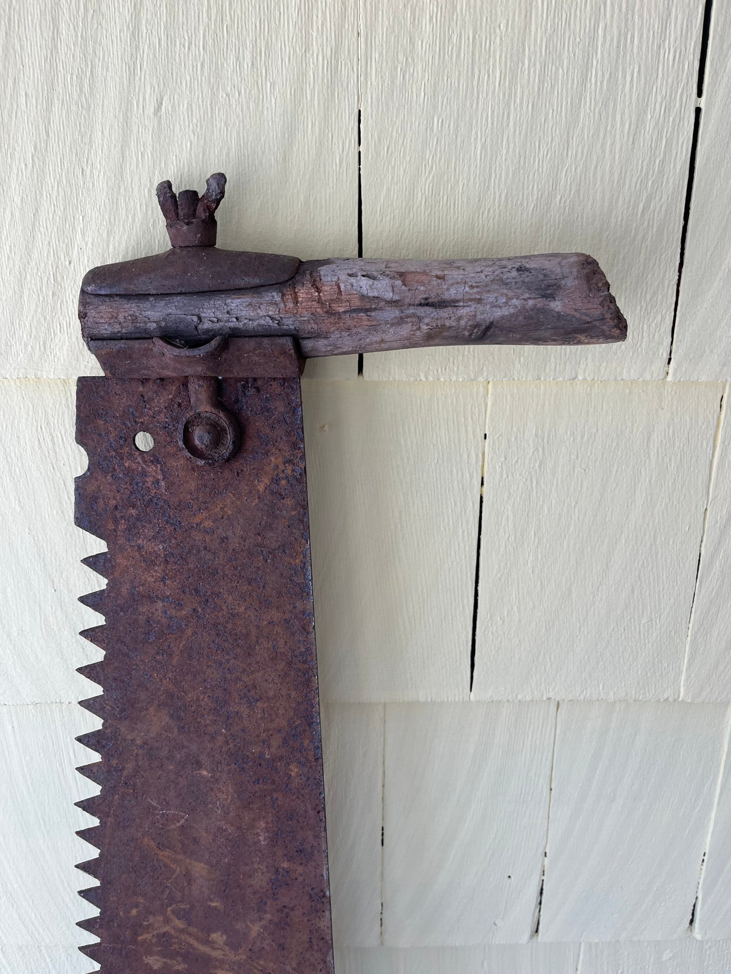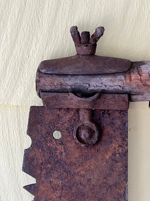 Commonly found today as vintage tools for collectors, decorative wall art, or repurposed for woodworking projects. This piece has a distressed finish in one of the handles is broken, adding to its character.