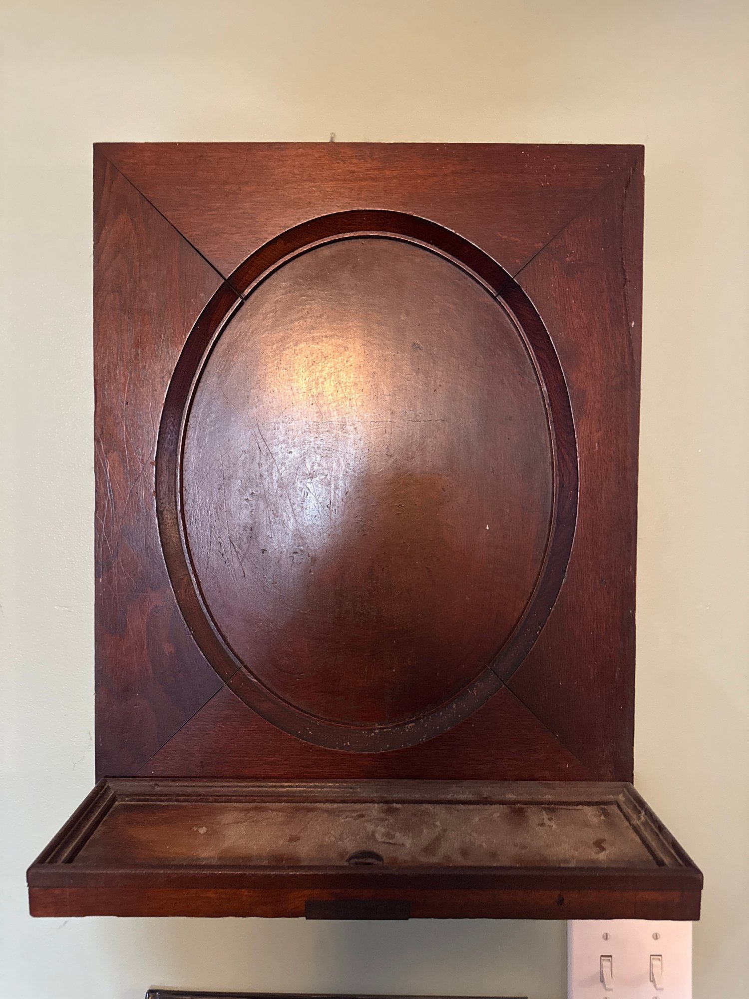 Shelf is 18 inches wide 22 1/2 inches high and 7 inches deep.