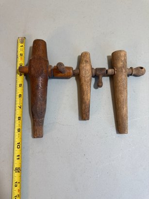 set of authentic antique wooden barrel spigots, perfect for collectors, rustic décor, or restoration projects. These classic taps were traditionally used to dispense liquids from wooden barrels, adding a charming historic touch to any setting.
