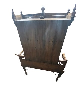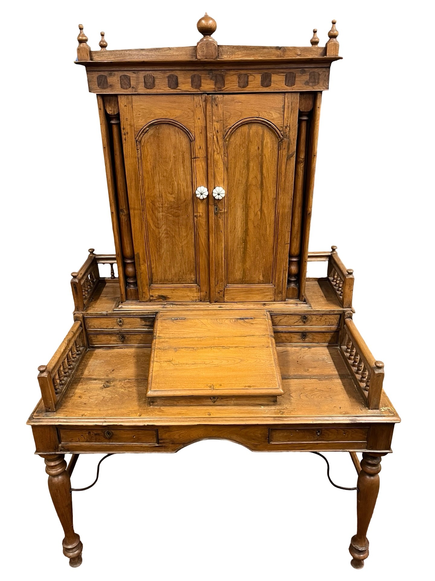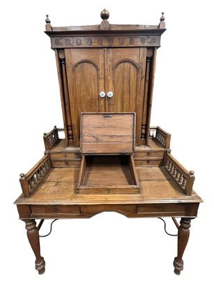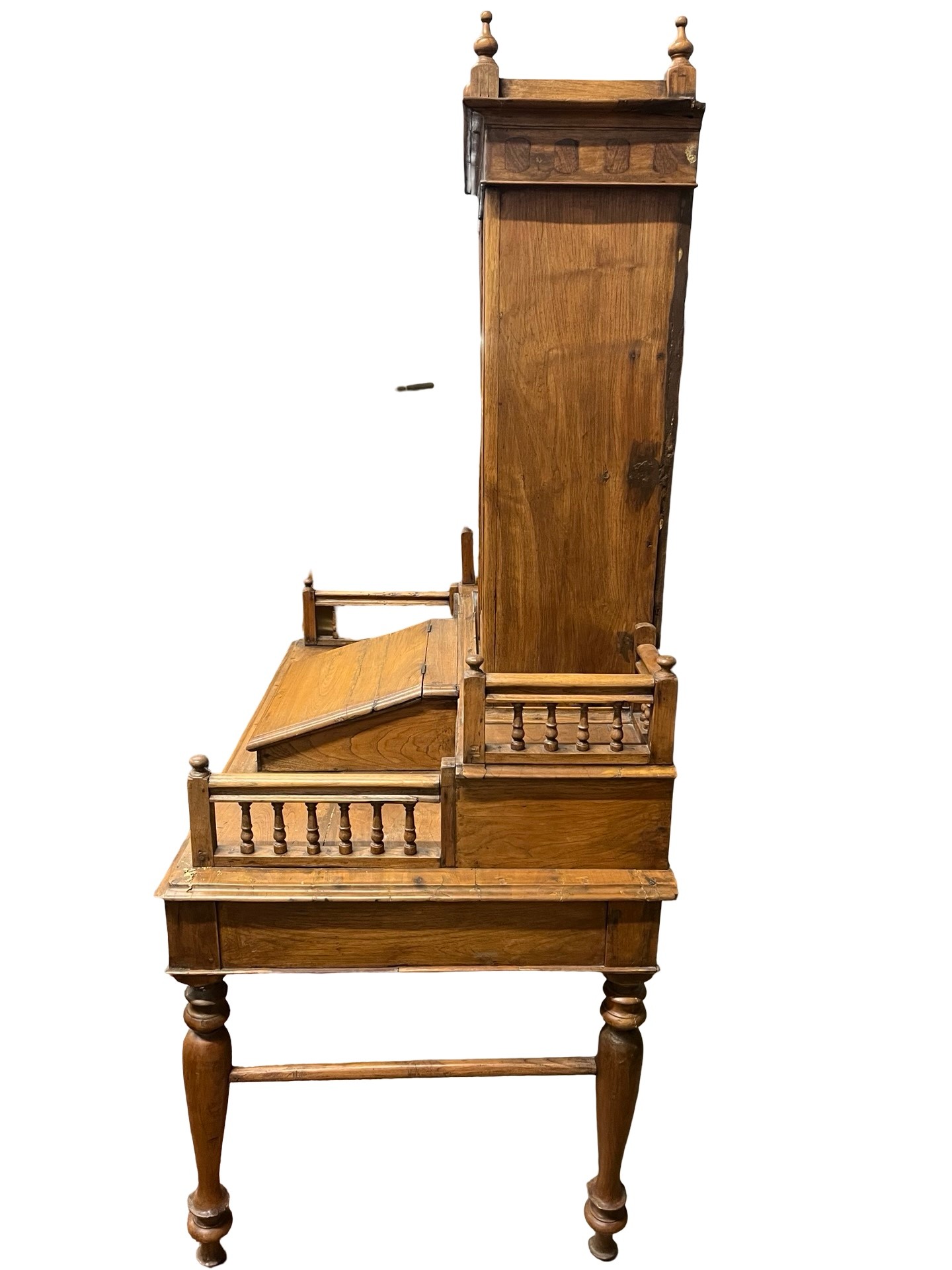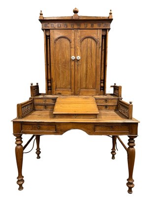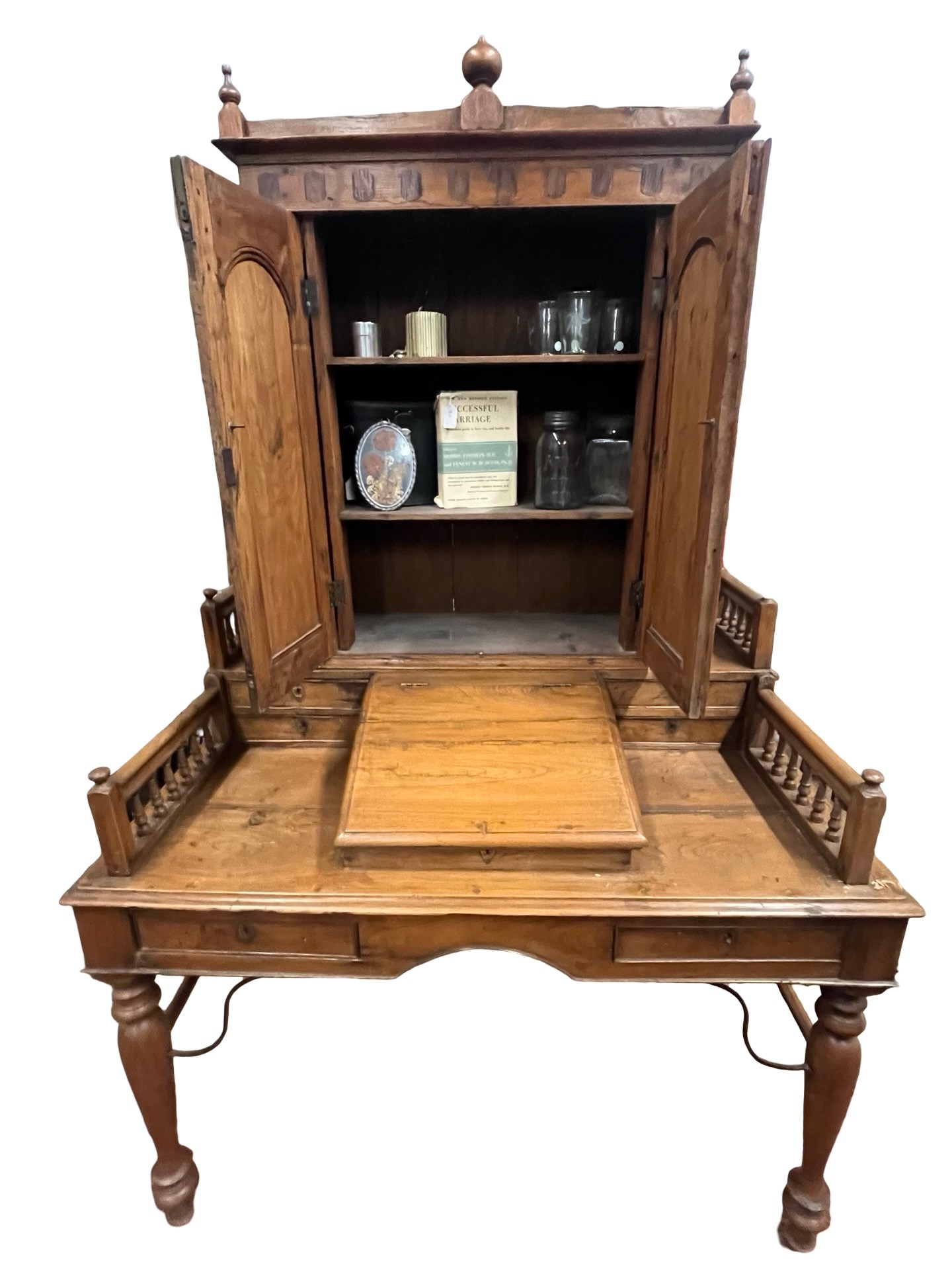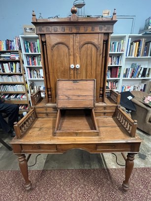 Design: Features a distinctive high-hutch top with cabinet doors and a drop-front writing surface.