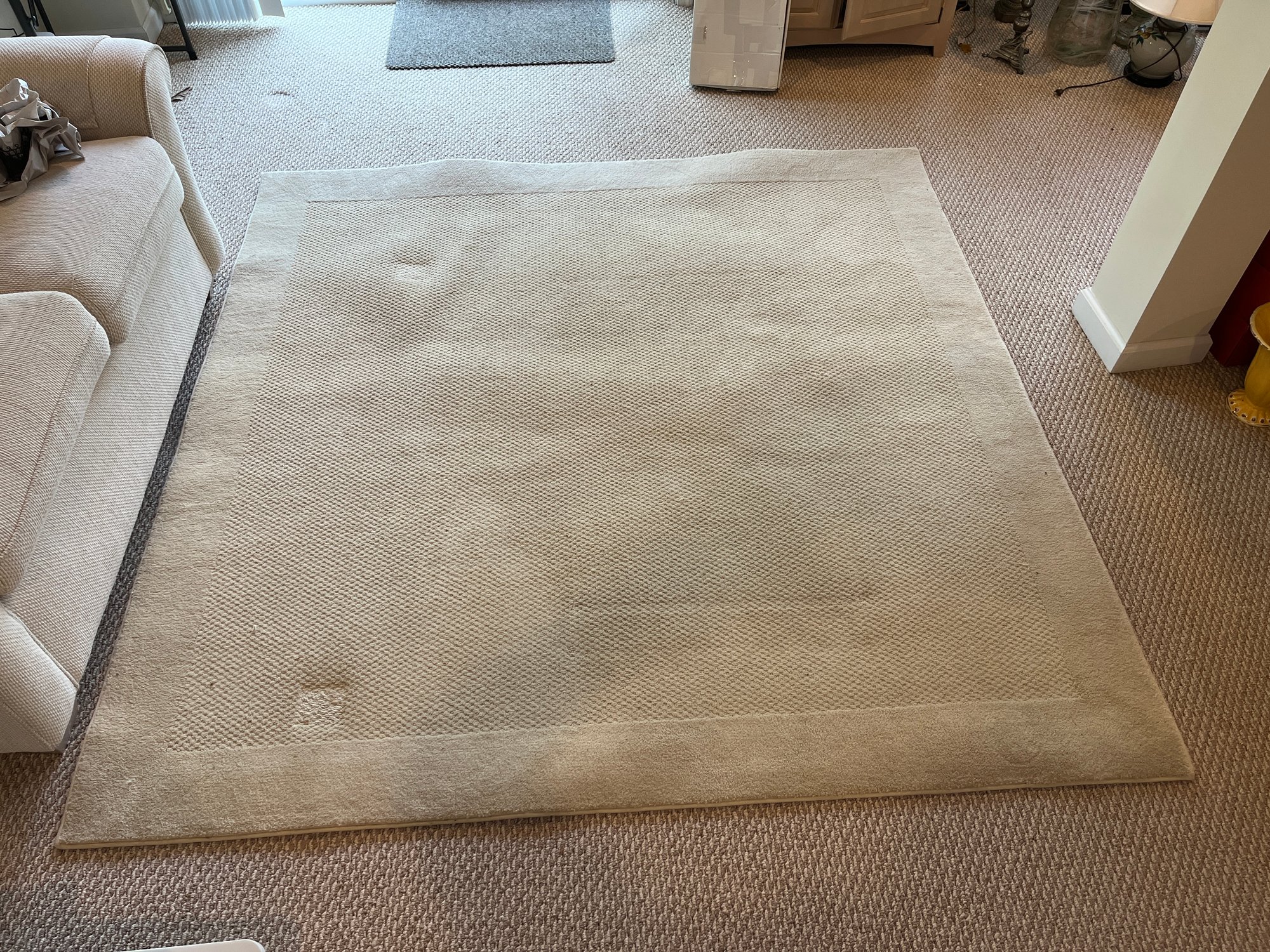 Measures 6 1/2‘ x 6 1/2‘. Could use a vacuum but overall very good condition.