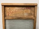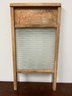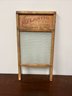 It features a wooden frame and a ribbed glass scrubbing surface.