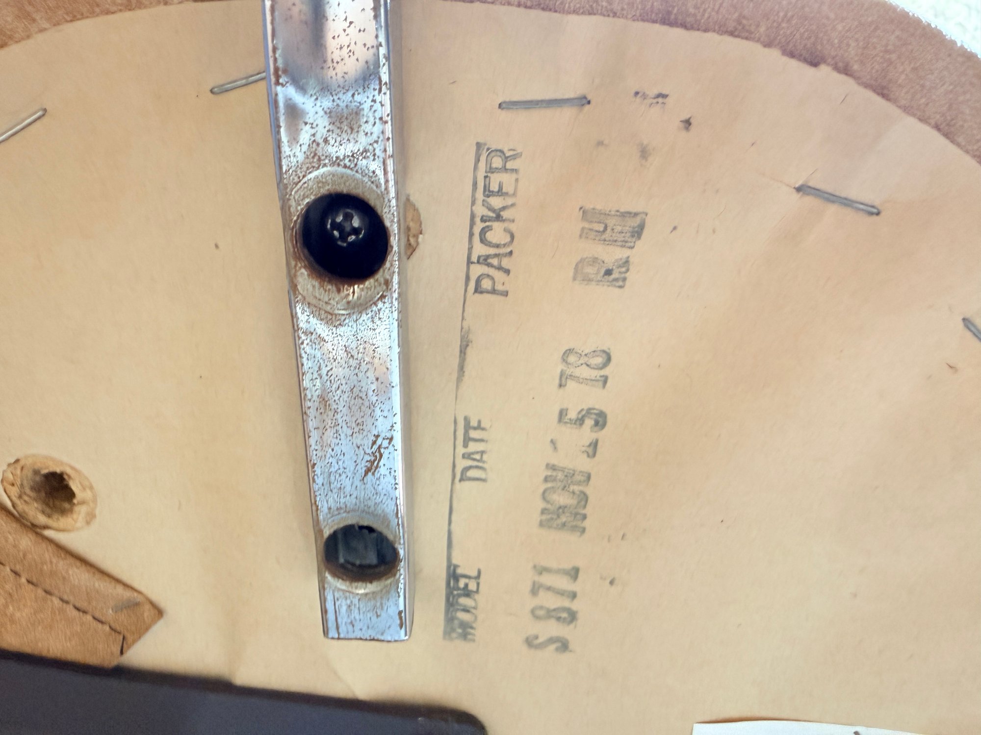 Hardware: Visible large X-head chrome bolts on the ends of the armrests are a signature detail of this model.