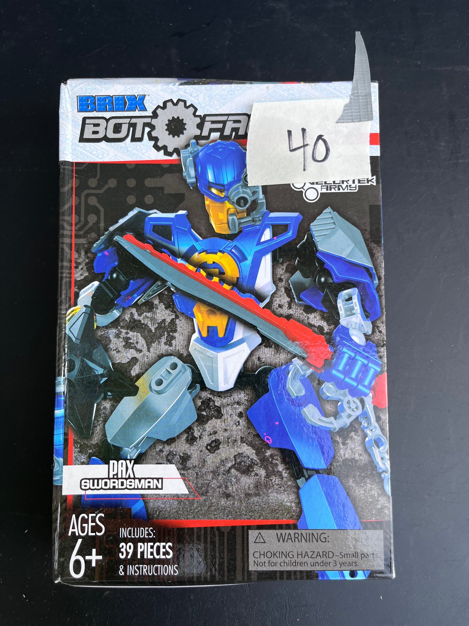 Pax Swordsman" robot action figure from the Brix Bot Factory toy line.