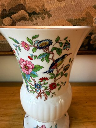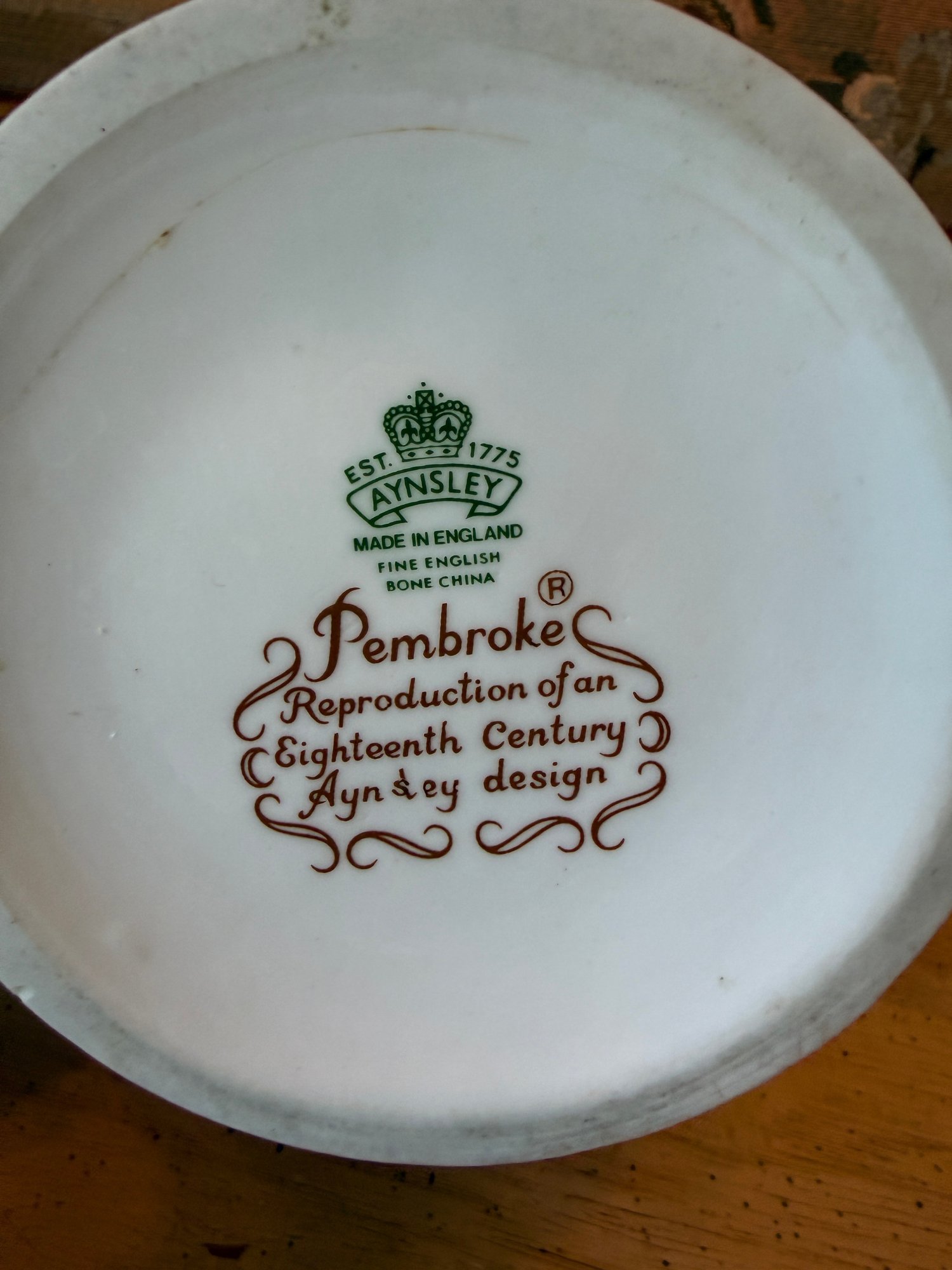 Pembroke, which features a vibrant blue bird (often identified as a kingfisher) and colorful floral motifs including pink peonies and blue flowers.
