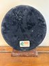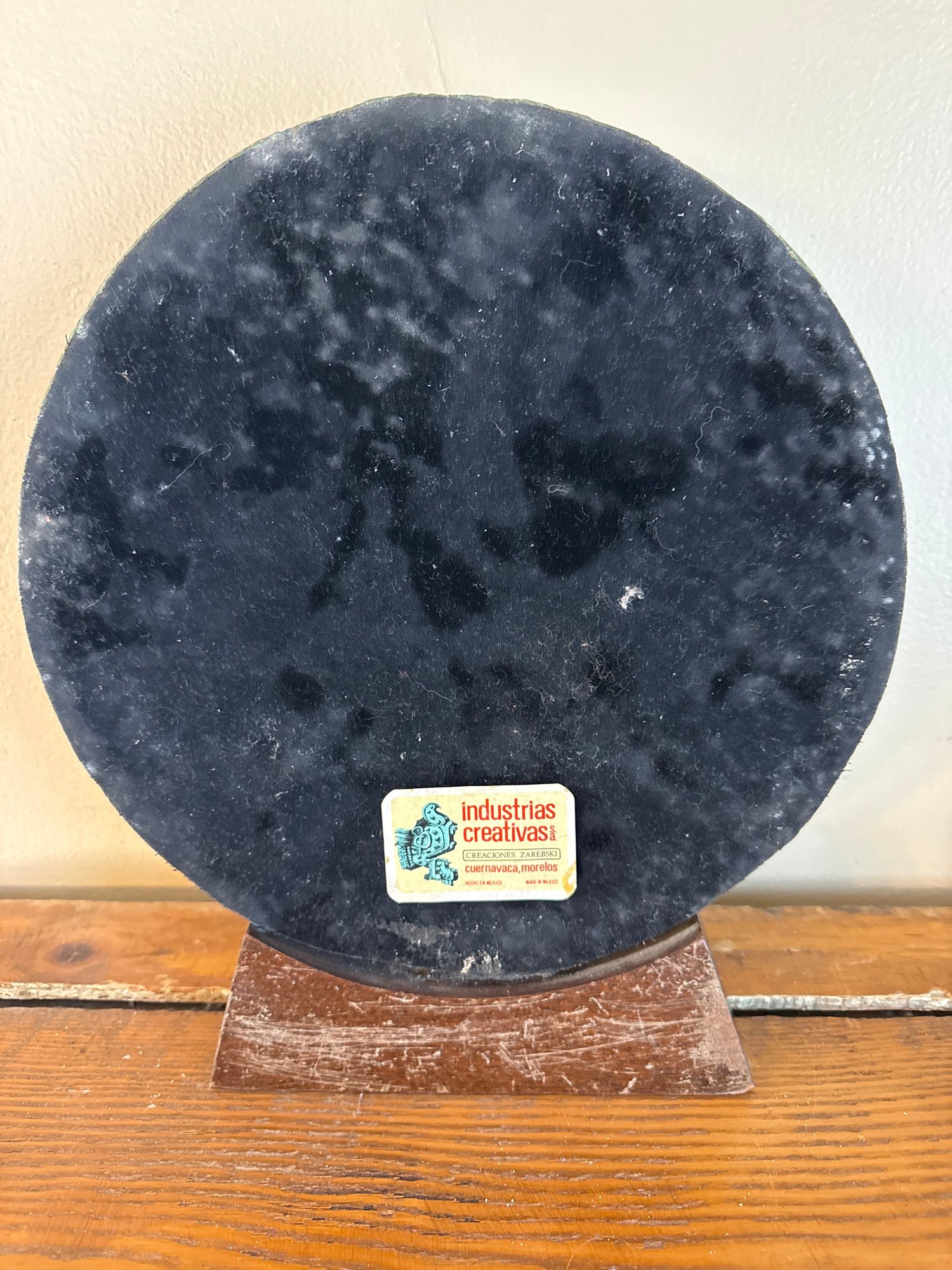 Stone is 11 inches wide and height, including Stand is 13 inches high.