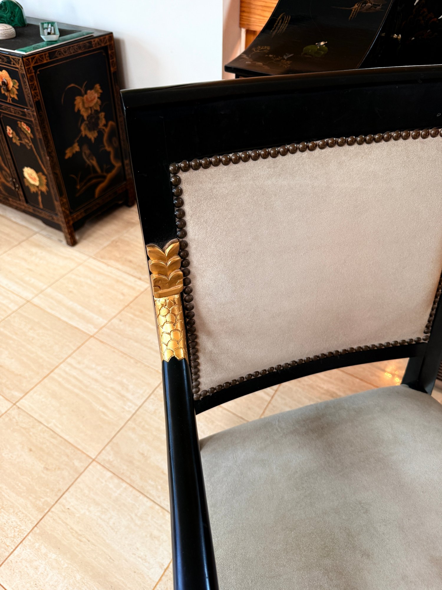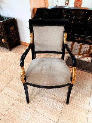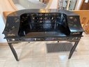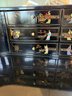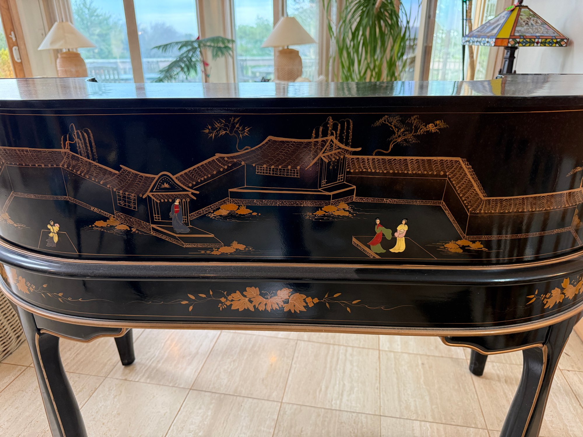 Finish: Hand-painted black lacquer with intricate gold, silver, and bronze detailing.