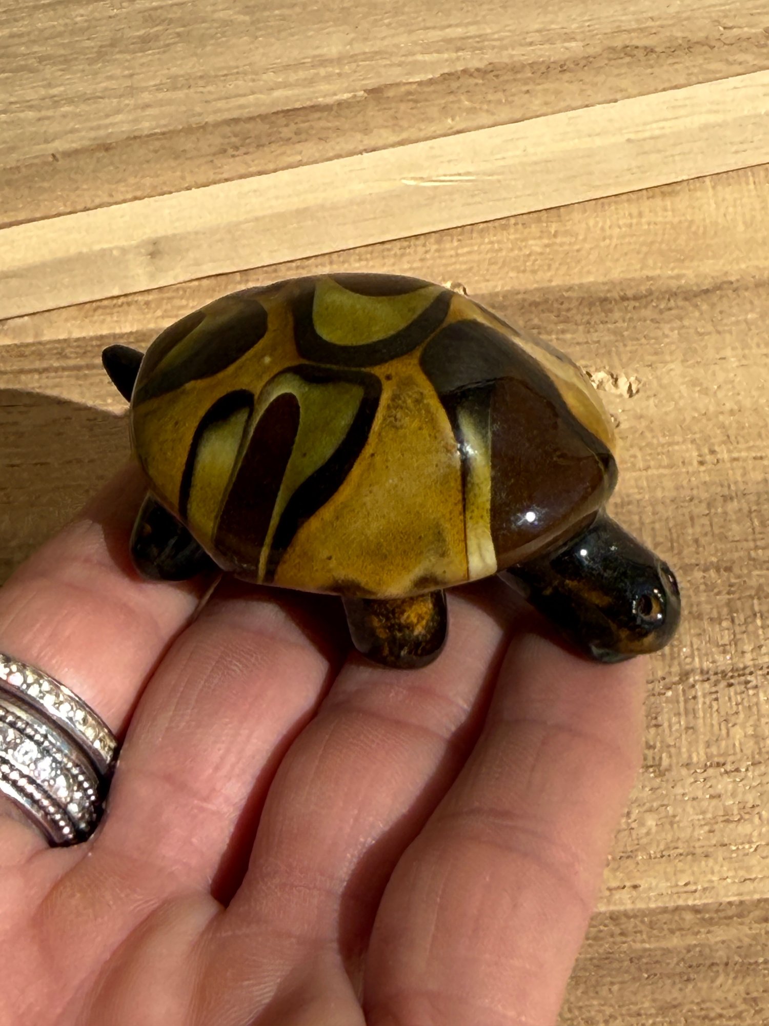 Small turtle is 2 1/2 inches long and 1 inch high.