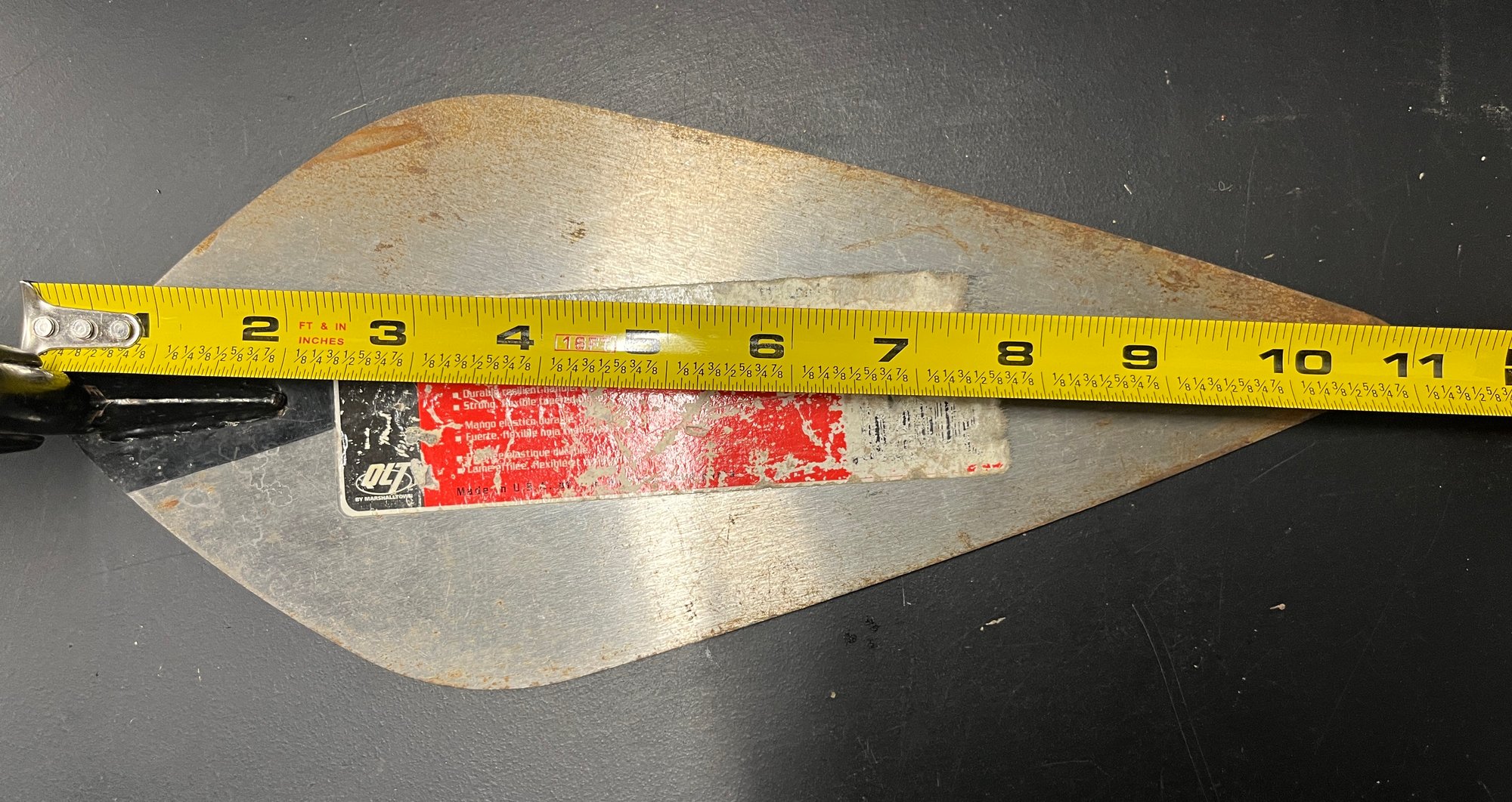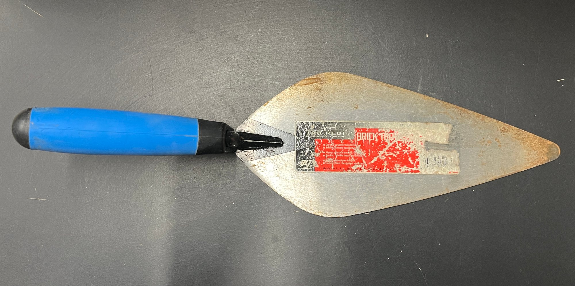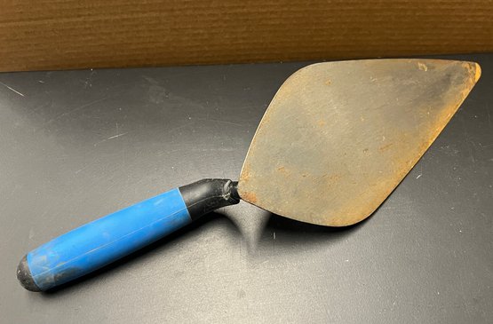 Used for spreading mortar or cement when laying bricks. It has a soft, non-slip handle for comfortable grip. This specific trowel is an 11-inch wide London-style trowel. It is suitable for both professional and DIY use.