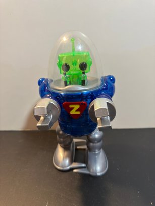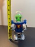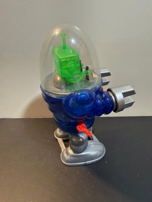 Design: Features a retro-futuristic style with a green alien character inside a clear dome.