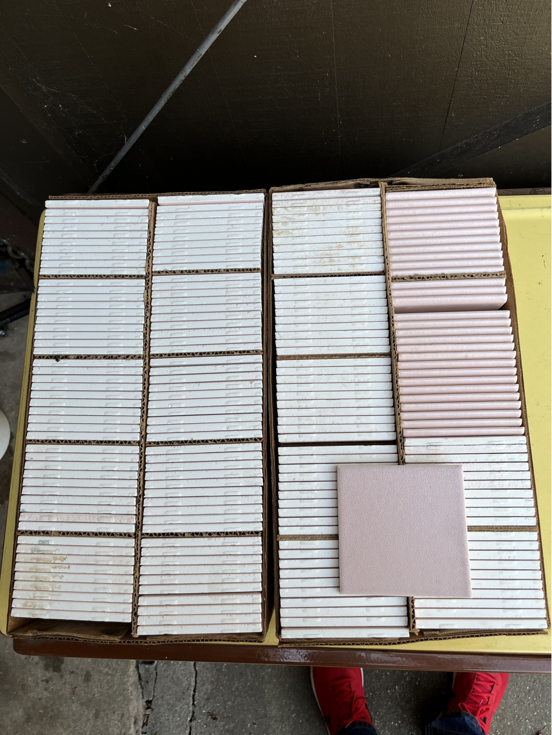 4x4”, 170 light pink squares. 29 with 1 rounded edge