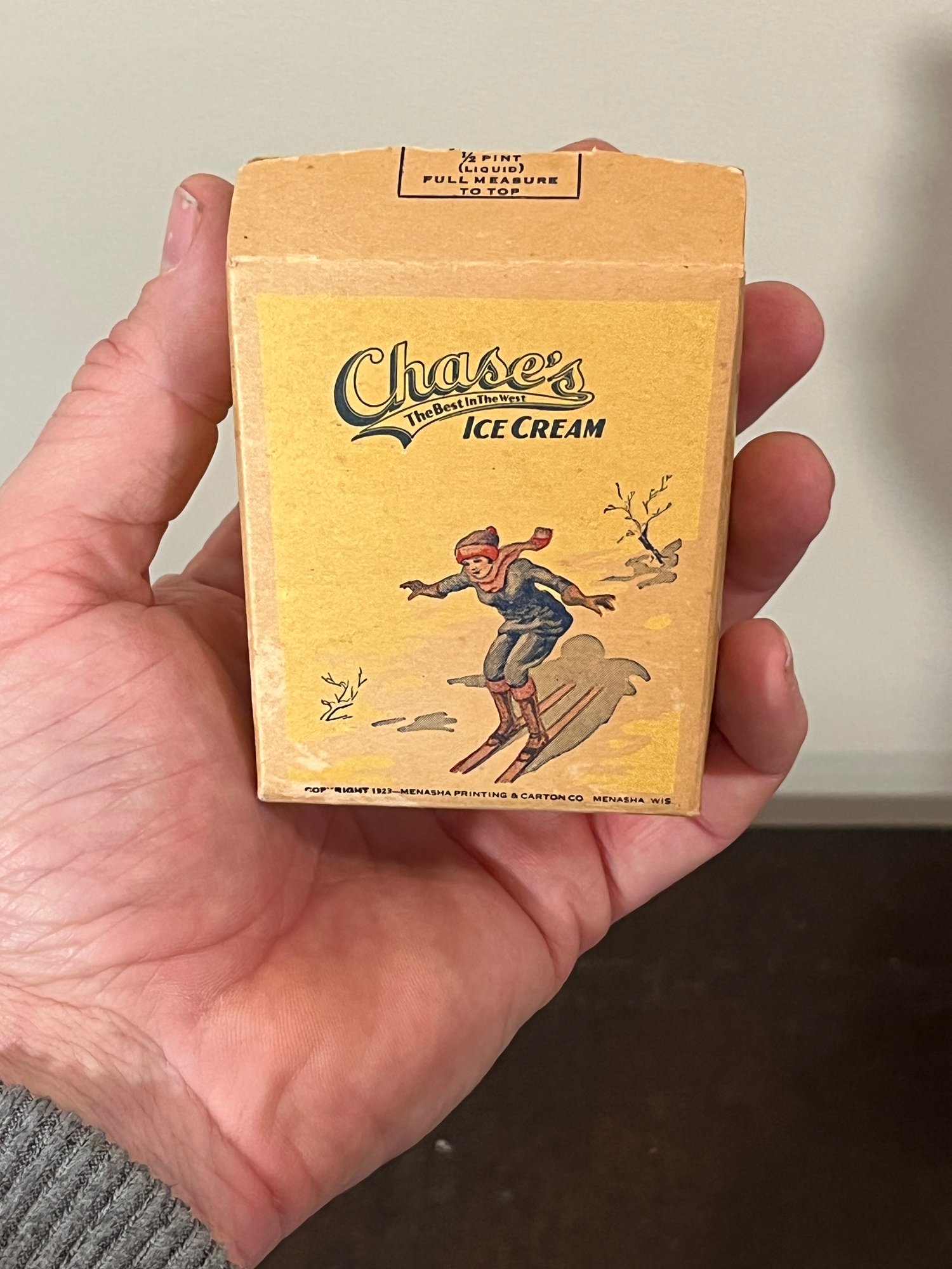 Chase's Ice Cream Half Pint container Provo UT 1923