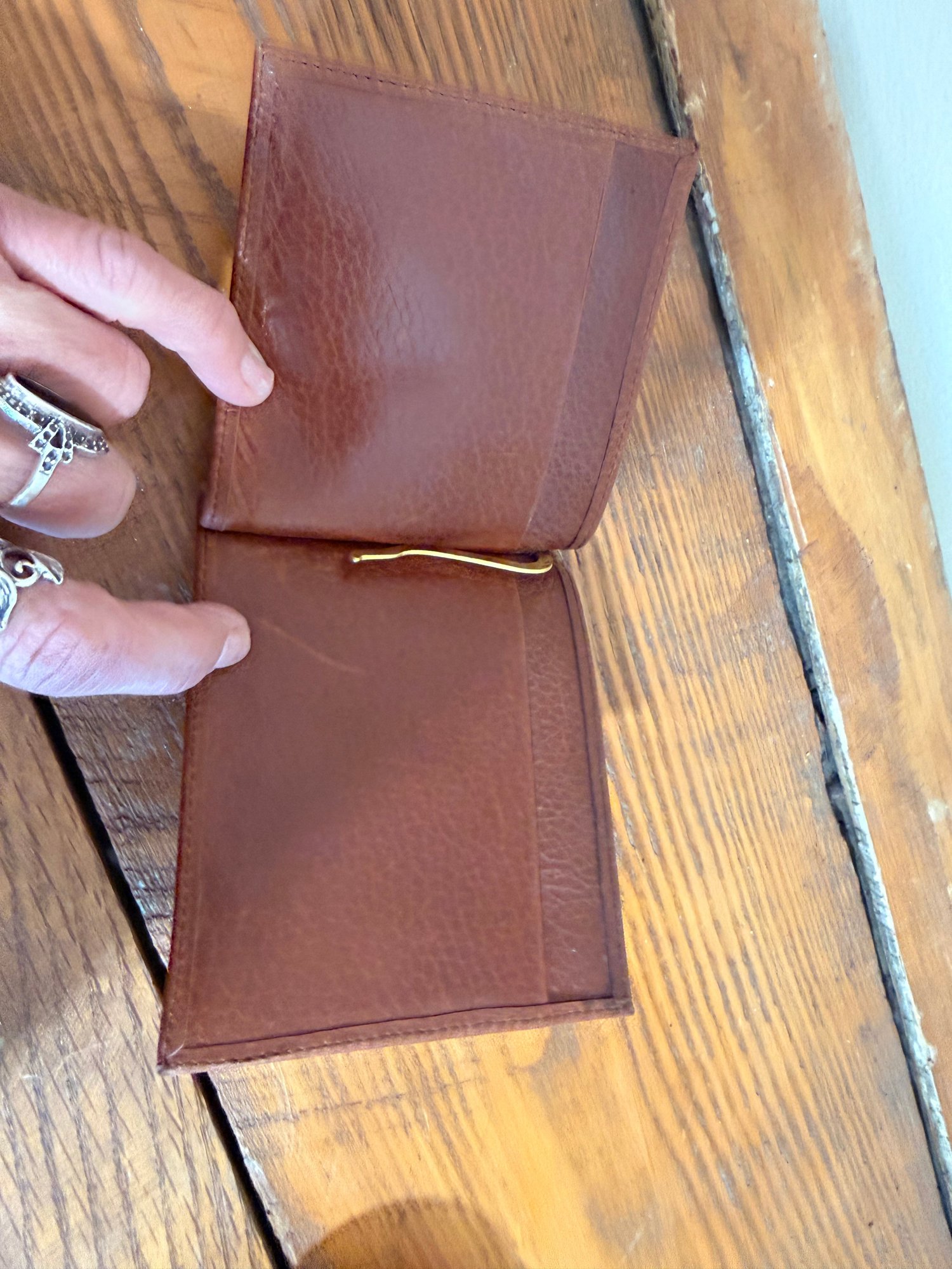 Wallet is 4 1/2 inches wide by 3 3/4 inches.