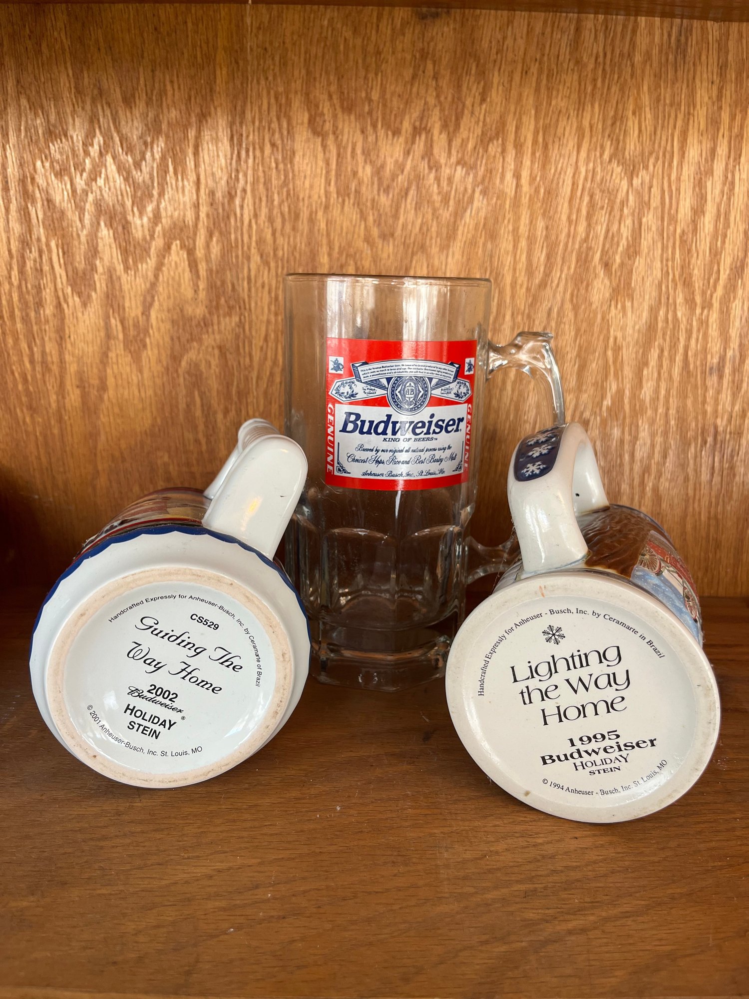 Collectible beer steins produced by Anheuser-Busch for the Budweiser brand. collectible beer steins produced by Anheuser-Busch for the Budweiser brand.