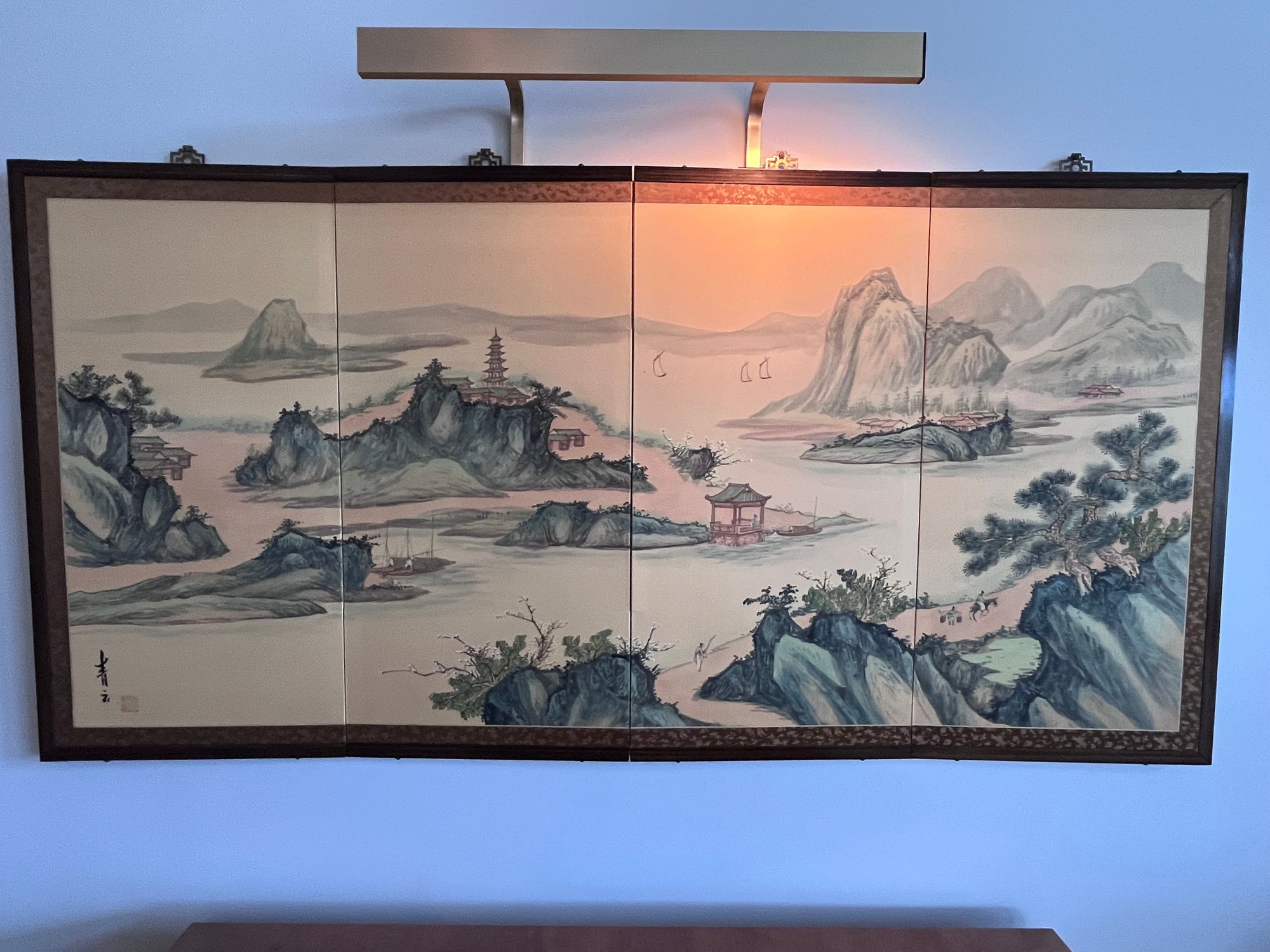 Structure: The piece consists of four hinged panels designed as a decorative wall element.