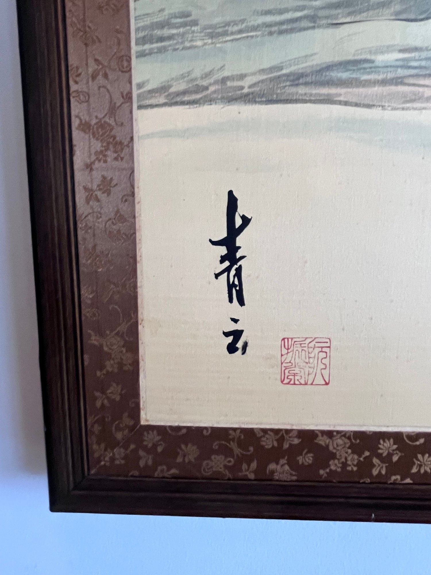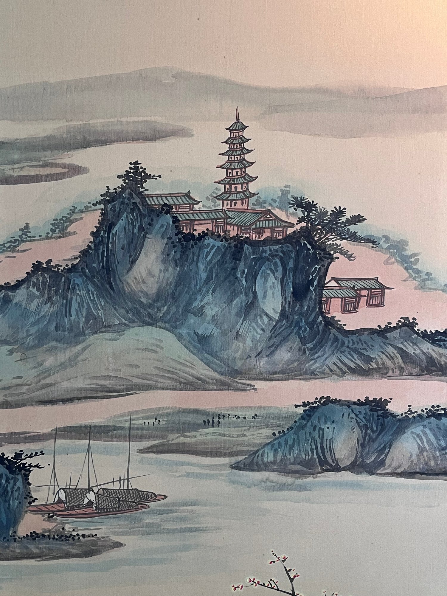 Style: It resembles traditional Chinese or Japanese Shan Shui (mountain-water) paintings, often created with ink on silk or paper.