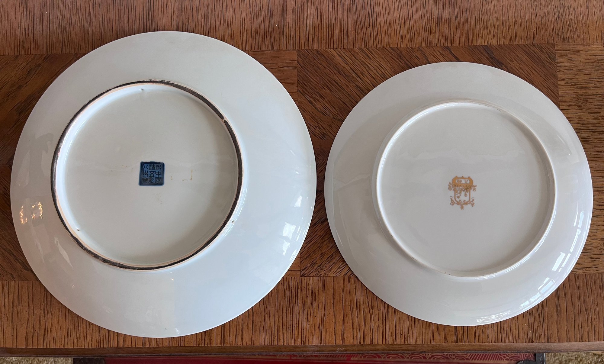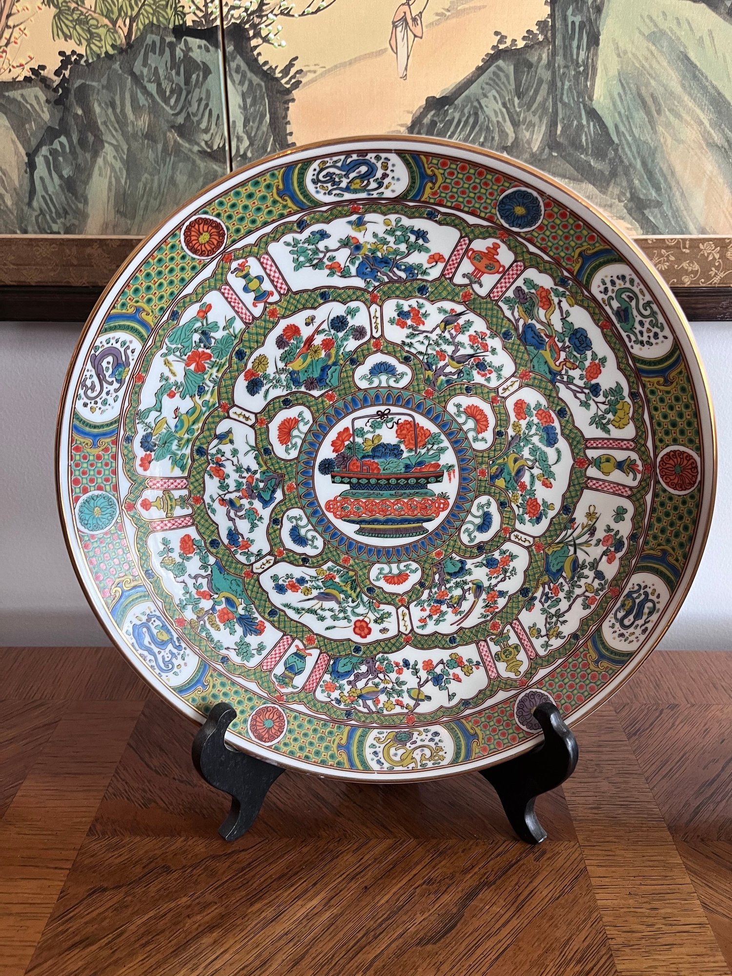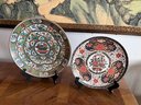 Right plate 10” looks like a Japanese Imari-style decorative plate, possibly by a modern maker.