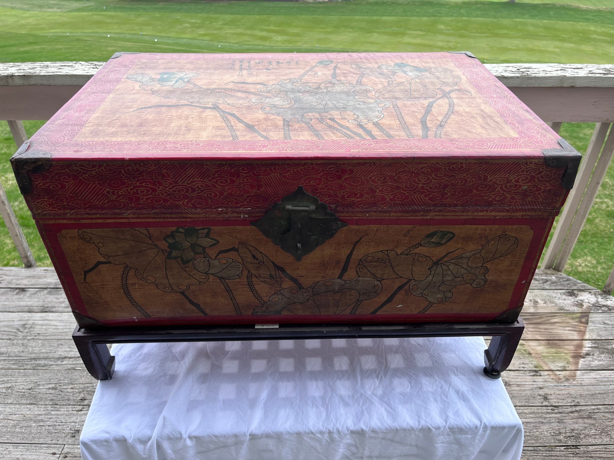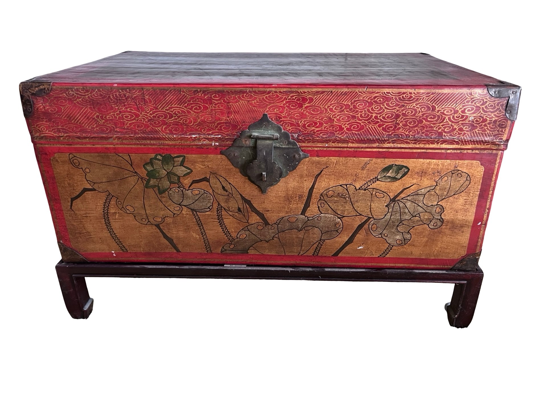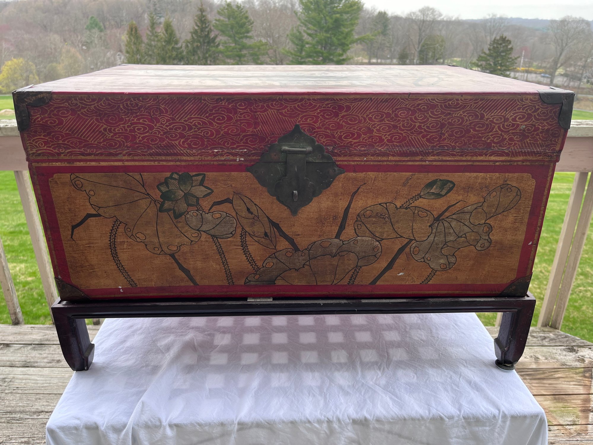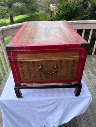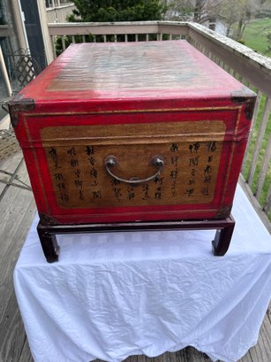 Decorative Chinese-style lacquered trunk / blanket chest, likely a 20th-century export piece made in the style of older Qing dynasty furniture rather than an antique imperial-period original.