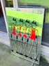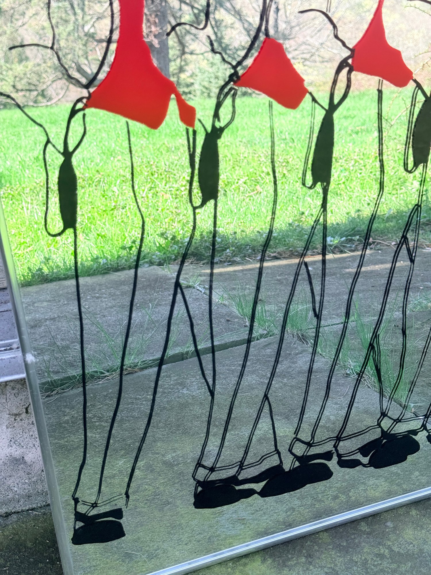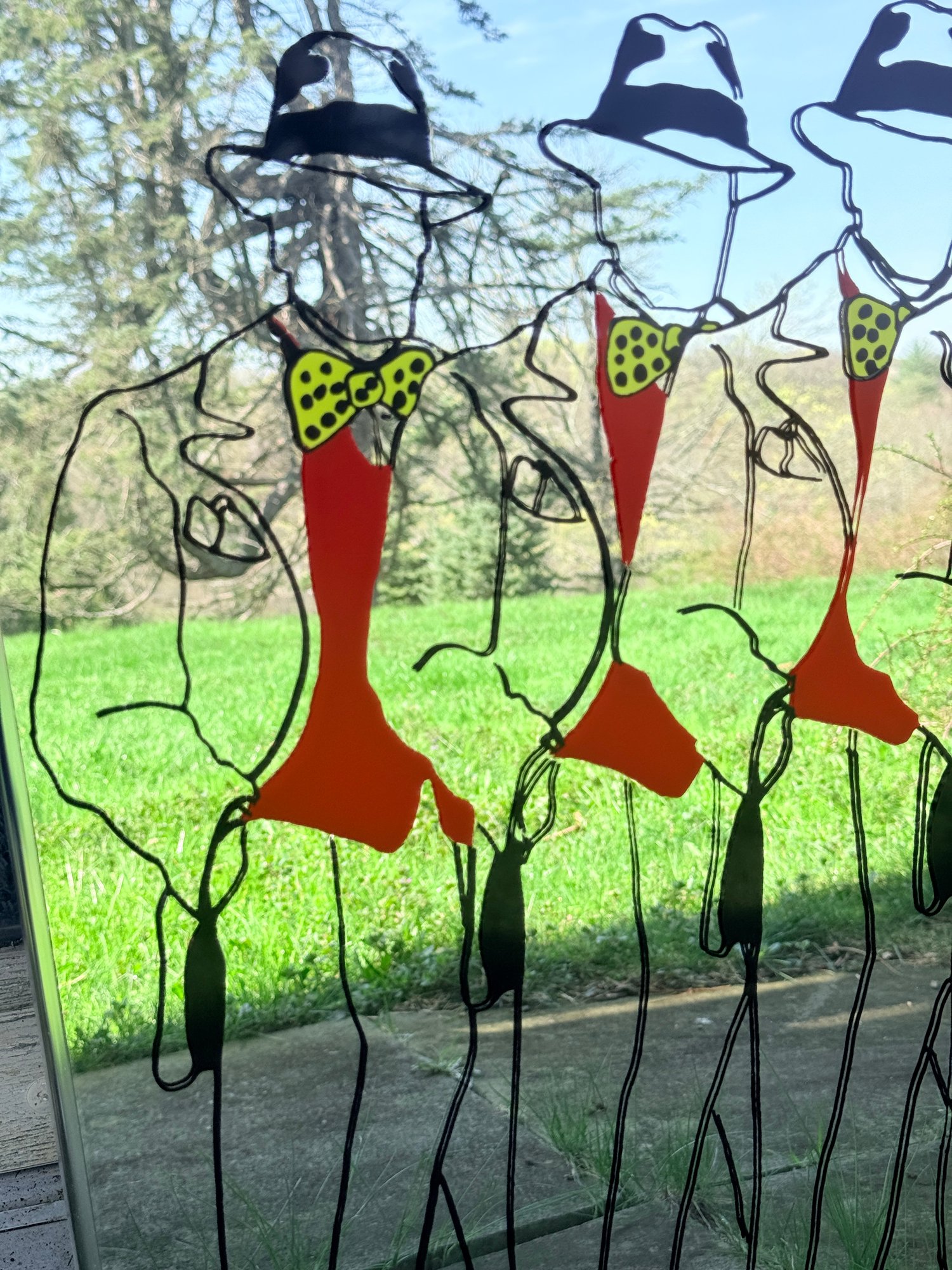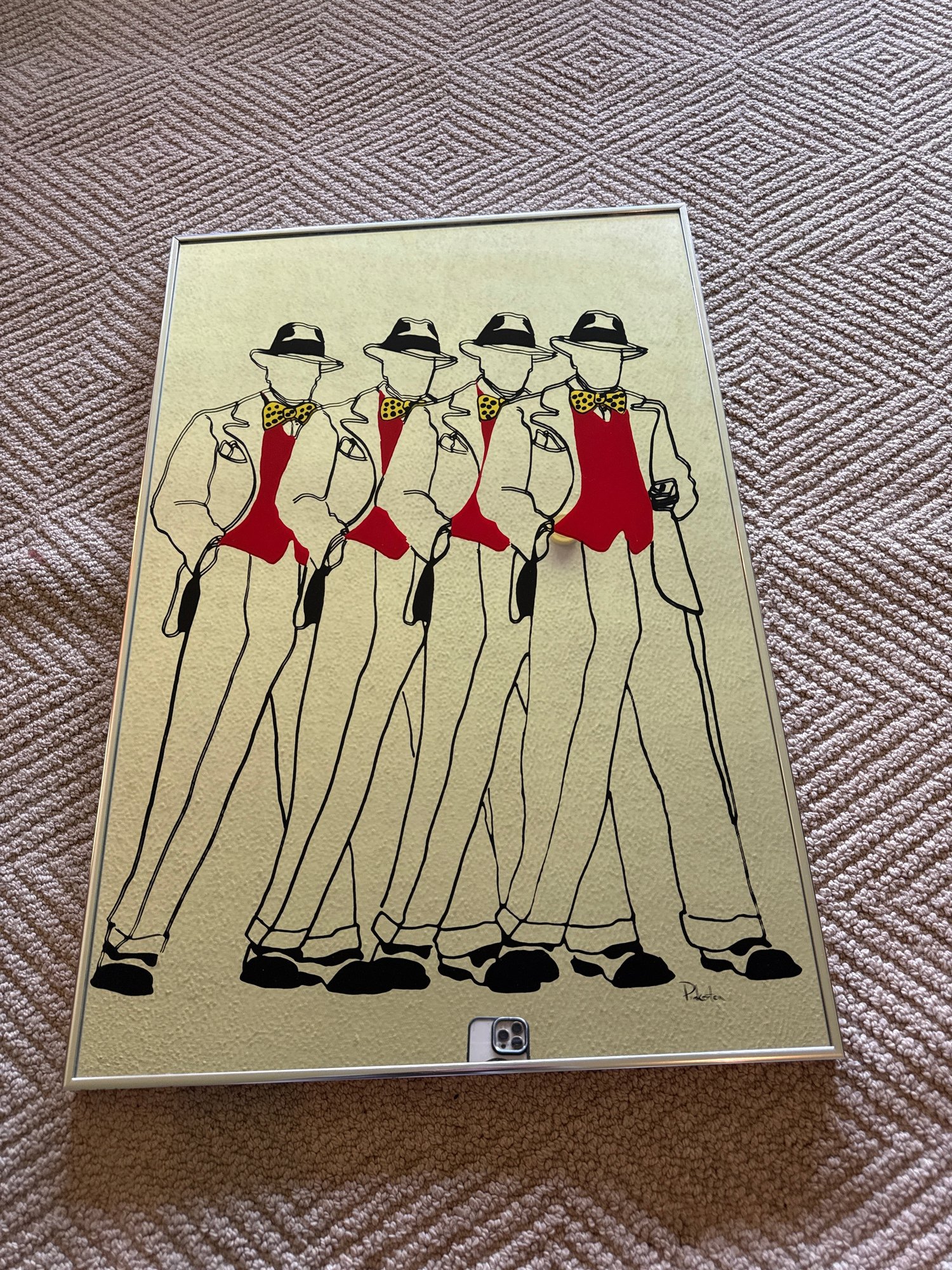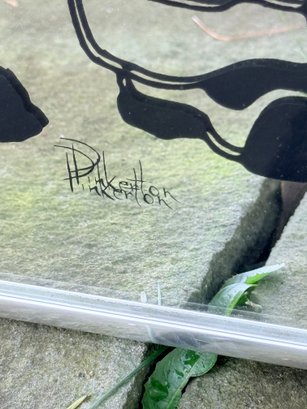 Distinct mid-century modern aesthetic, characterized by bold, minimalist line work and vibrant pops of color. It is consistent with the style of vintage carnival prizes or "fair glass" from the 1970s and 80s, which often depicted stylized figures and pop culture motifs on mirrored surfaces.