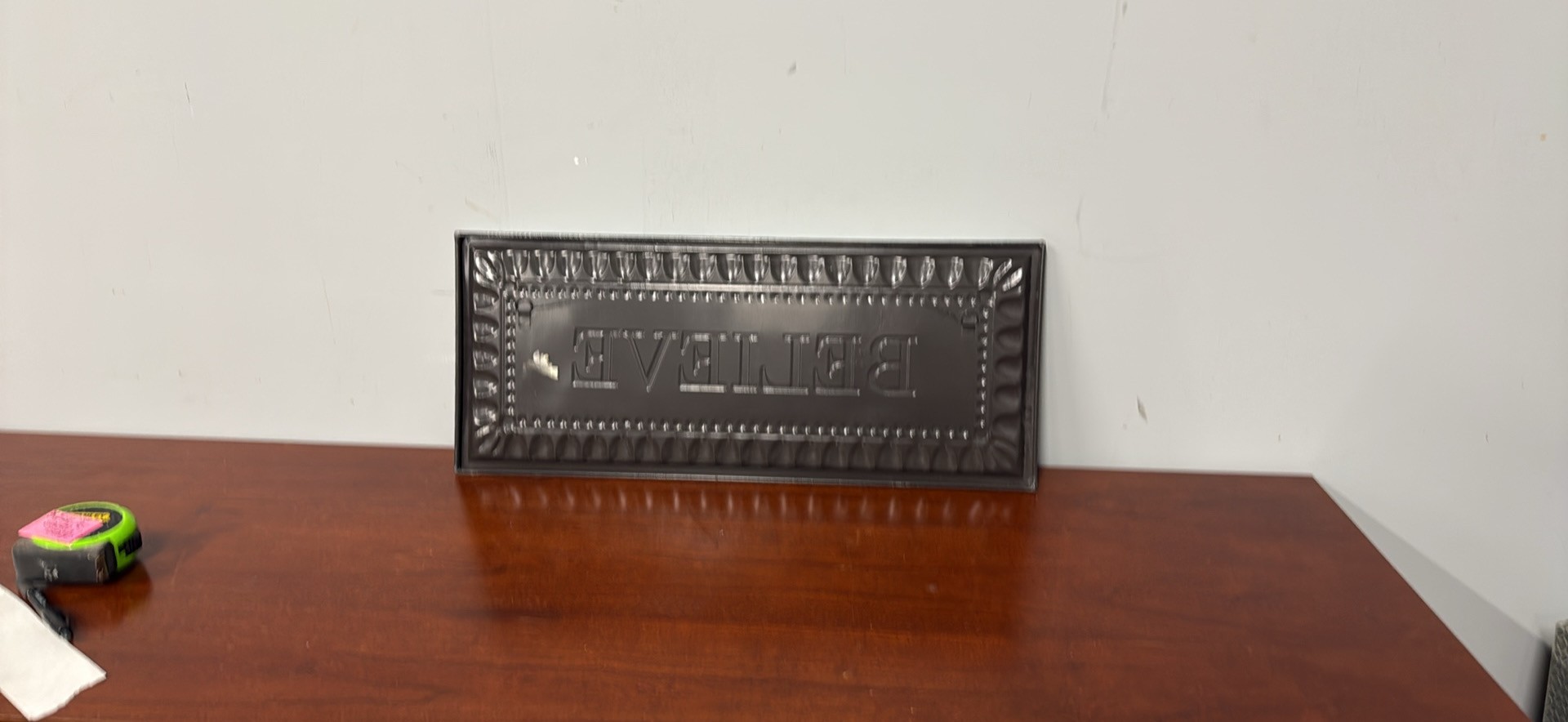Cute decorative sign with "BELIEVE" text. Creamy color with a cool distressed, crackled paint finish. Great for adding a rustic touch to any room.
