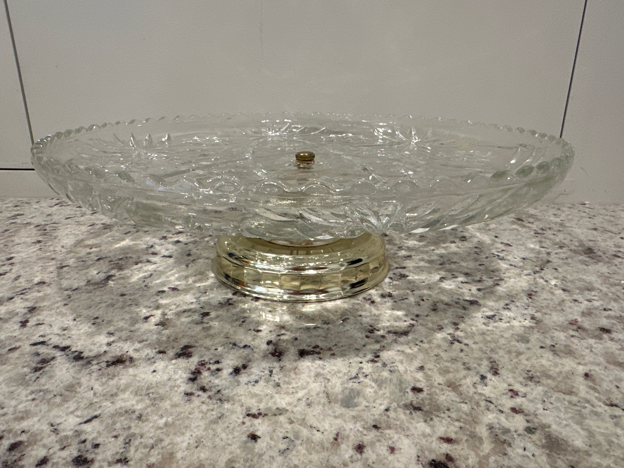 Cake plate is 13 1/2 inches round and 4 inches high.
