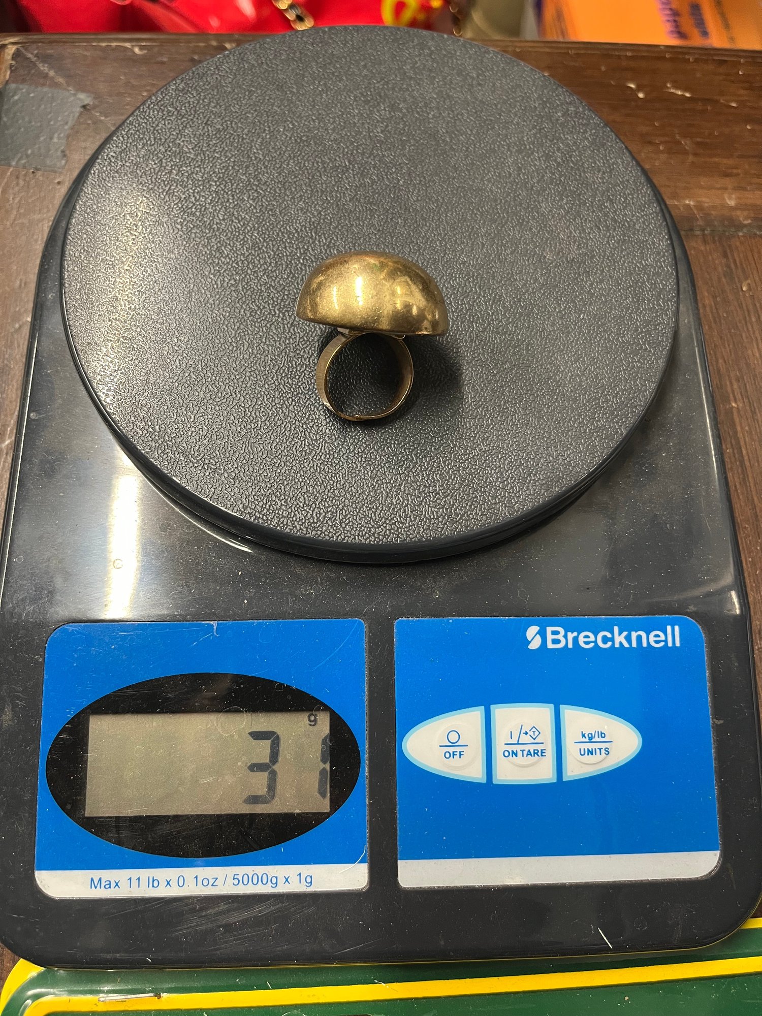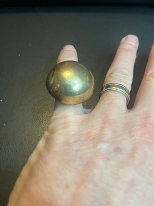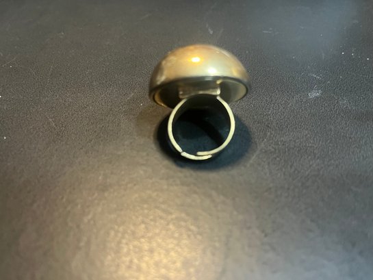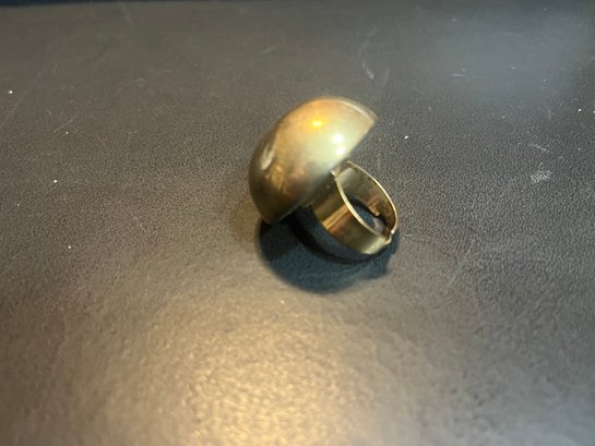 Bold, modern statement ring featuring a large domed top with a smooth, high-polish, gold-tone finish. The face is wide and rounded (almost “button” or mushroom shaped), giving it a sculptural, minimalist look.
