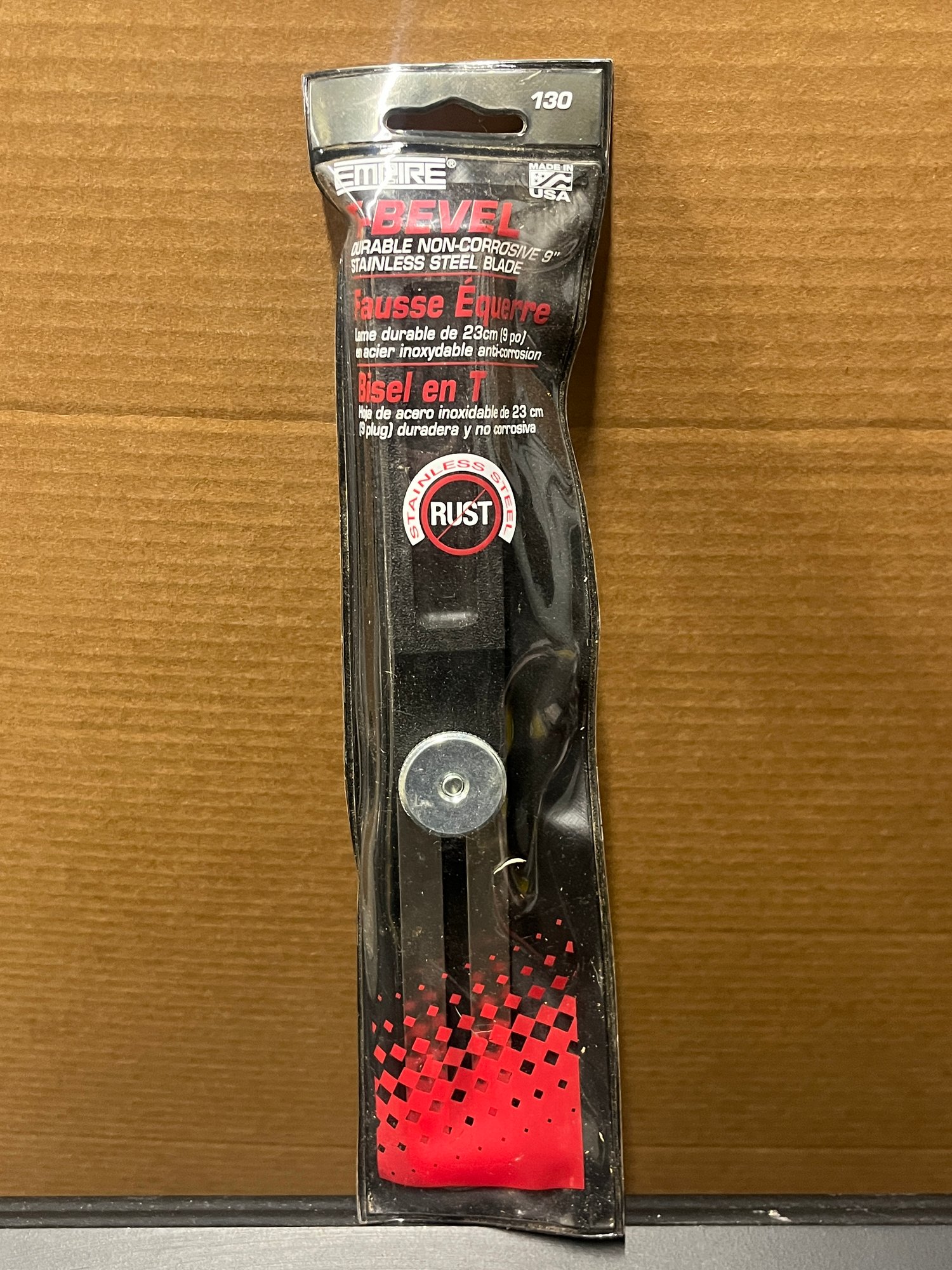 Empire 130 T-Bevel sliding square. It is a tool used for duplicating angles and laying miters. Has a durable, non-corrosive 9-inch stainless steel blade.