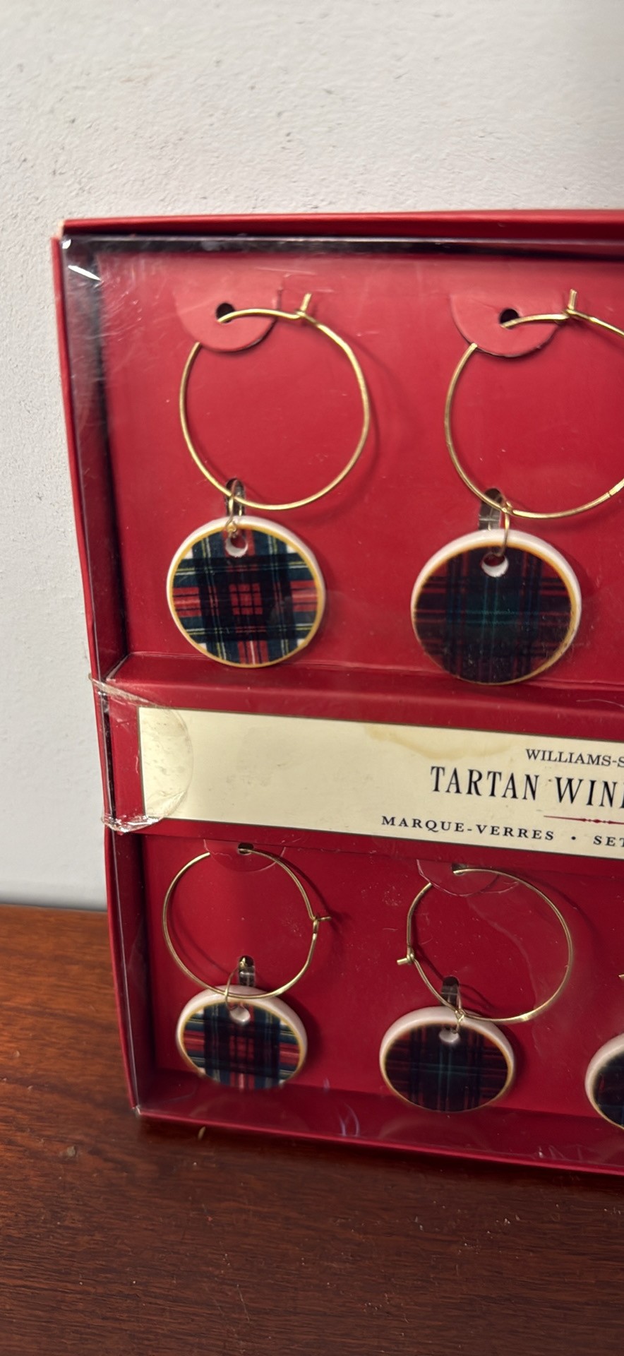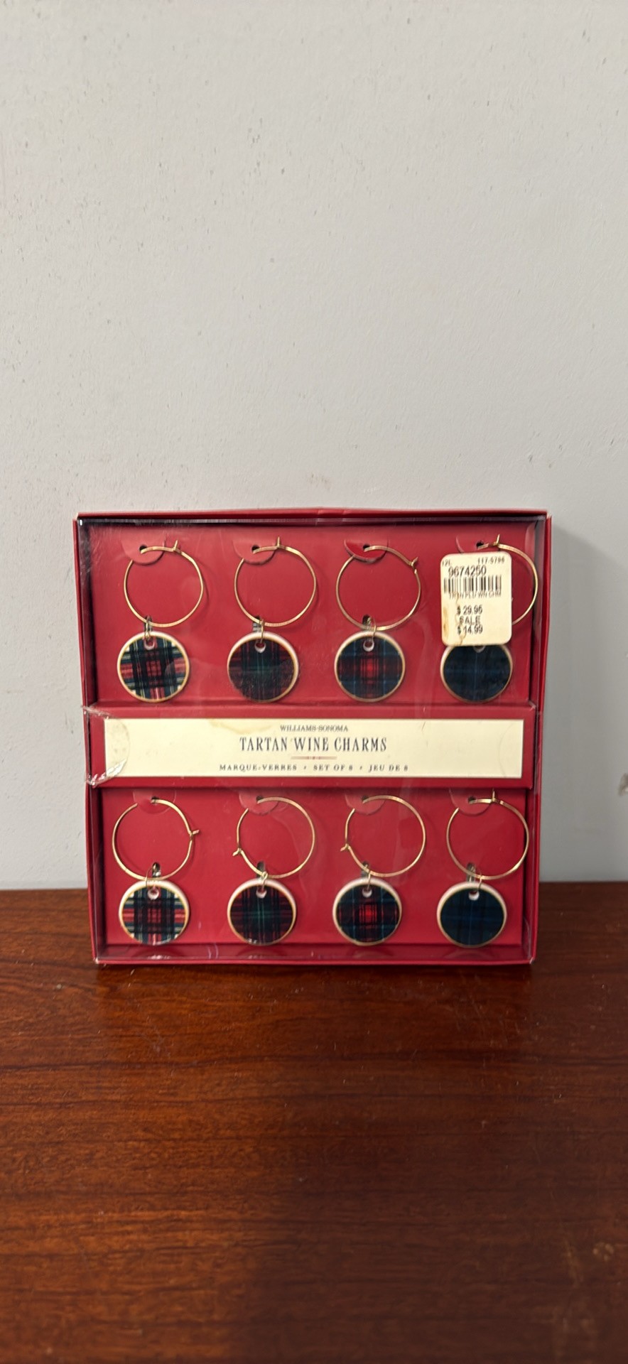 New Williams Sonoma Tartan wine charms. Set of 8. Each charm has a unique plaid design.