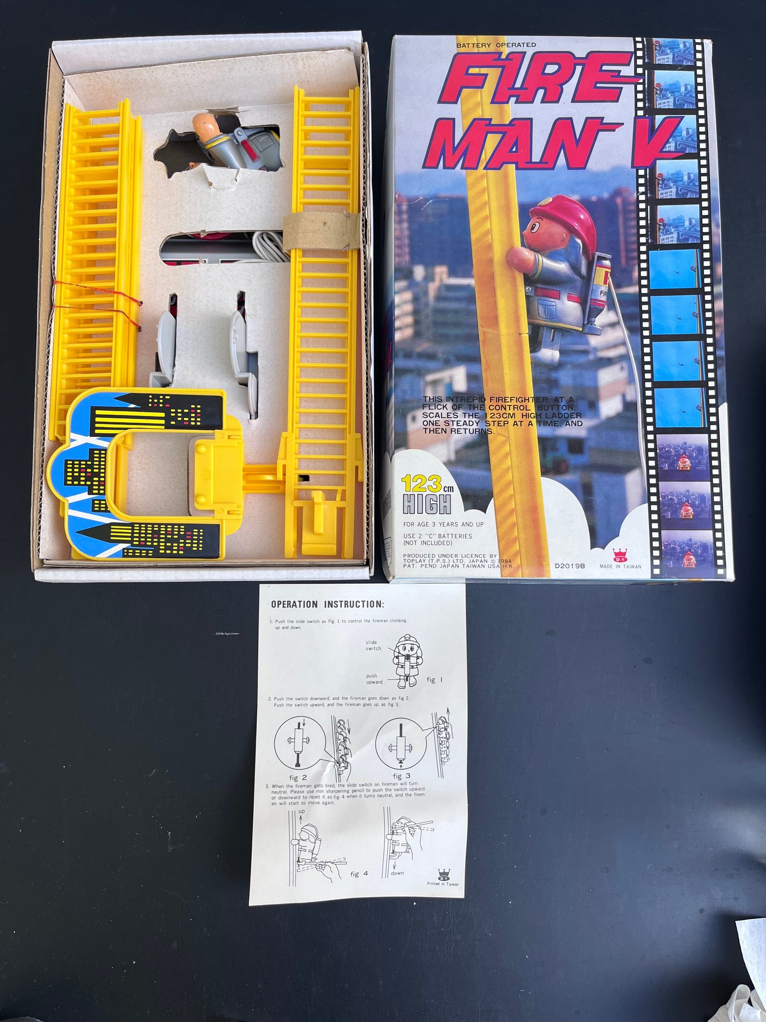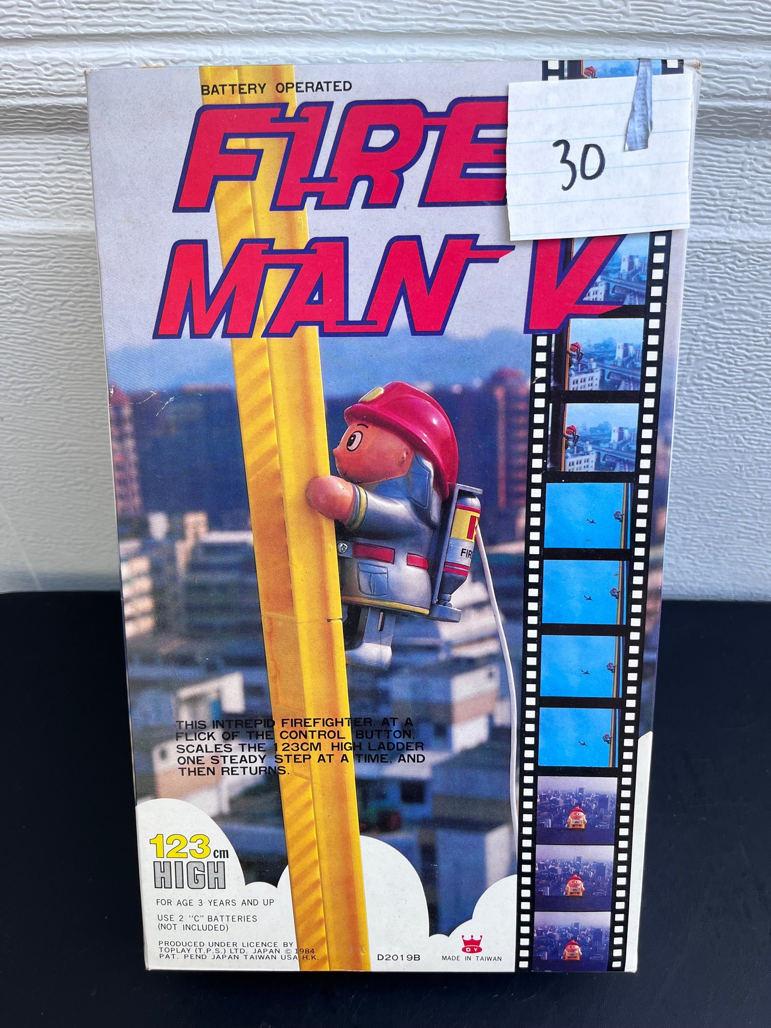 Fire Man V Climbing Fireman battery-operated toy produced in 1984 by Toplay.