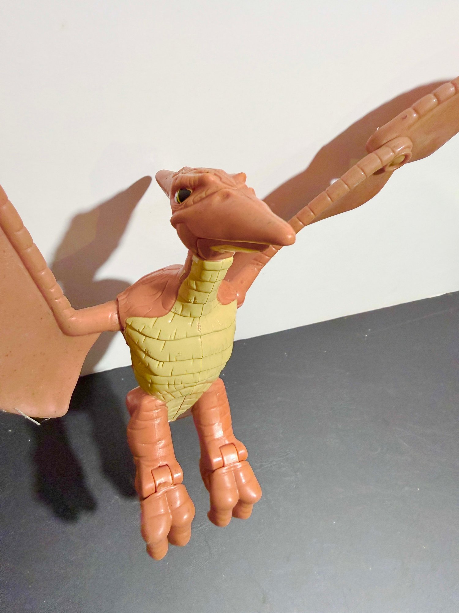 It has foldable wings an opening mouth, and claws that activate via a tail lever.