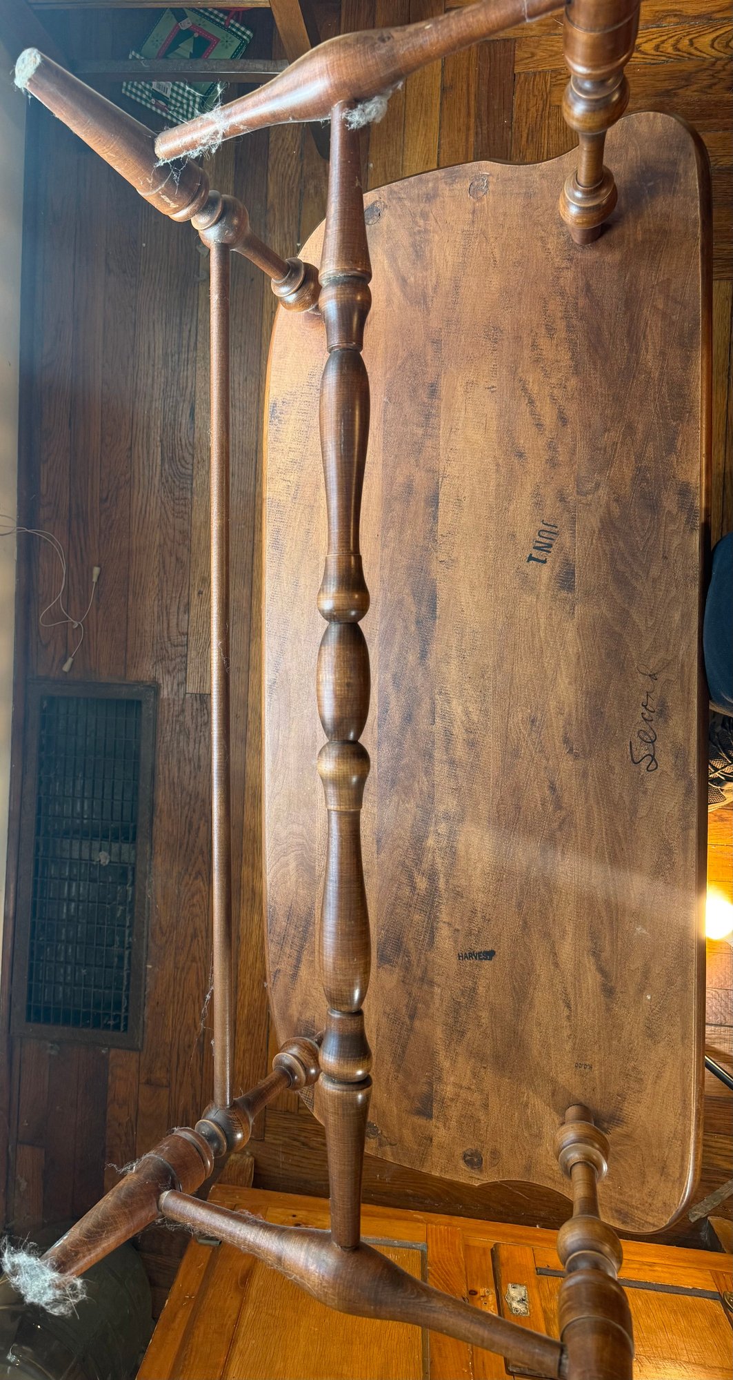 Material: Crafted from solid wood, potentially cherry or oak, finished in a rich, glossy darker tone that highlights the natural wood grain.