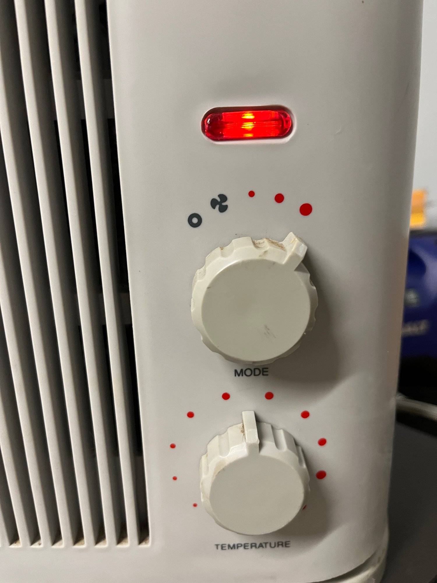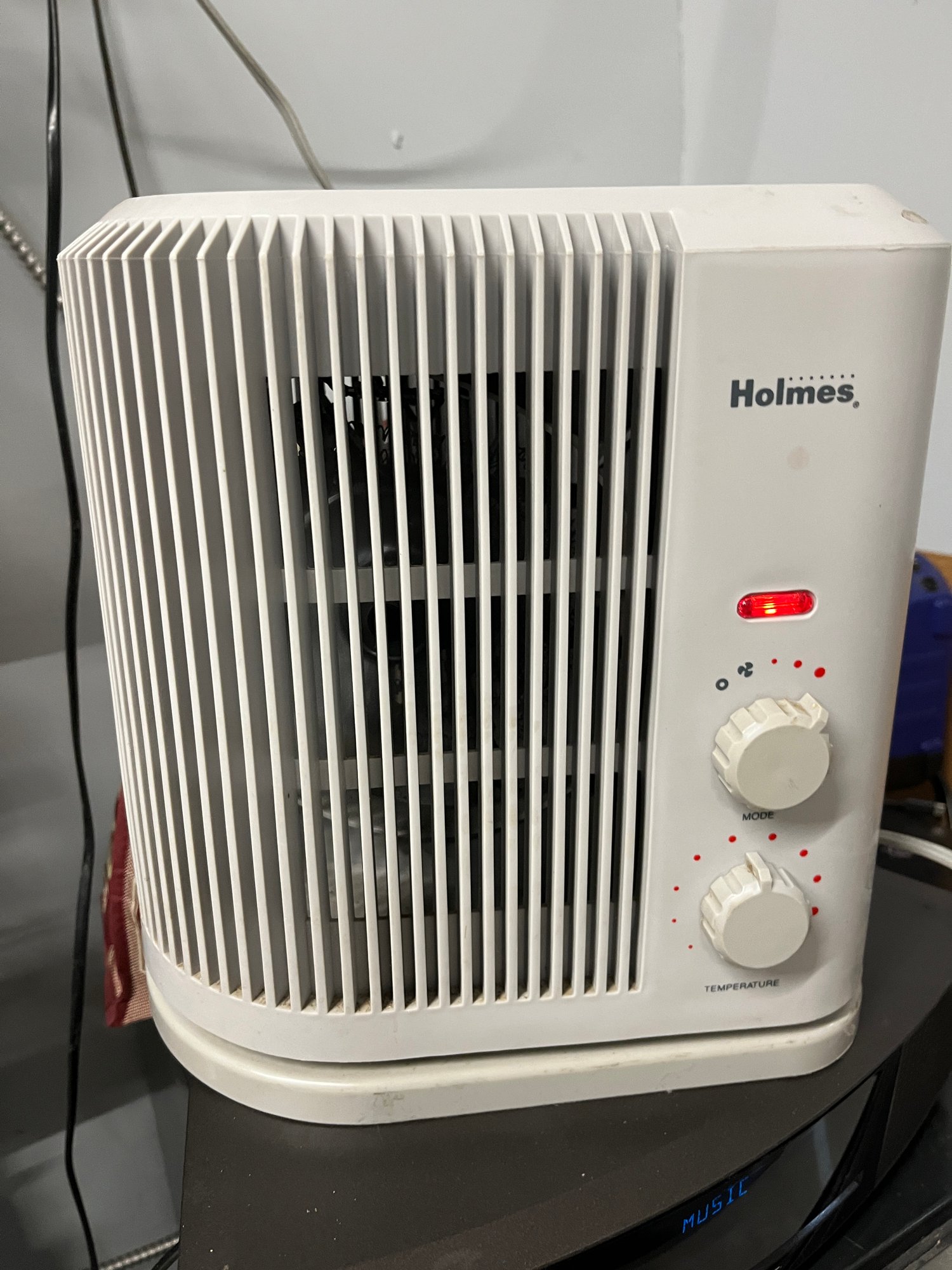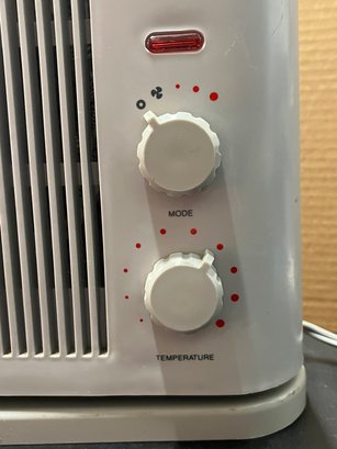 Has varying fan speeds and temperature settings. Measures 10.5 inches across by 11 inches high