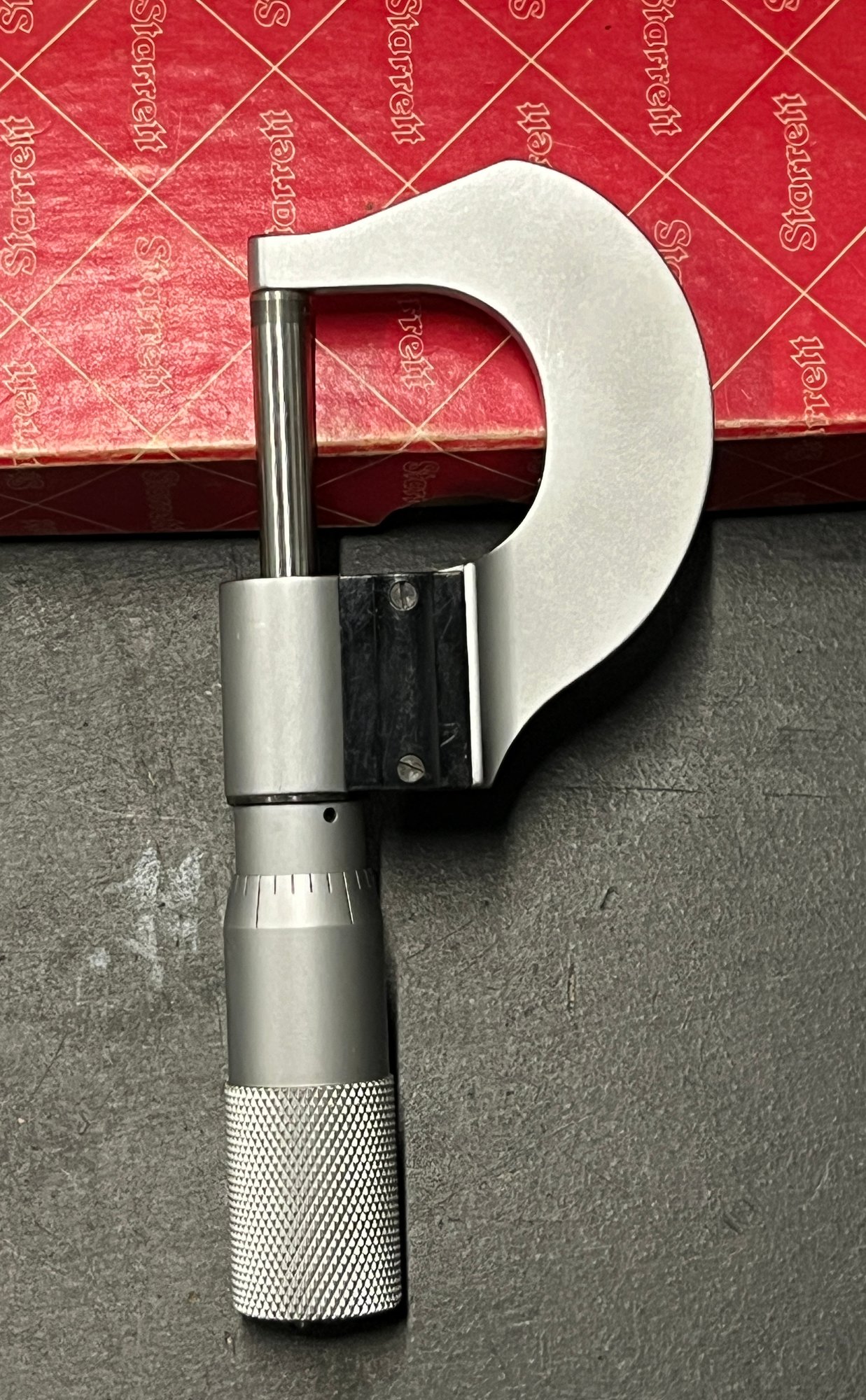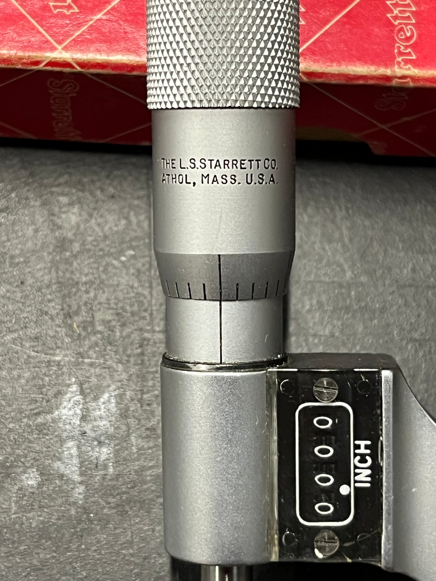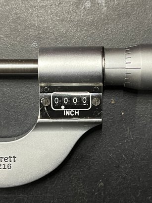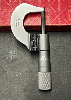 The L.S. Starrett No. 216 Outside Micrometer is a precision measuring instrument manufactured in the United States. It has a digital analog readout with a resolution of 0.00010 inches, allowing for accurate measurements ranging from 0 to 1 inch. The micrometer is designed for industrial use in CNC, metalworking, and manufacturing settings, and comes with a protective case to ensure its mint condition. This high-quality tool is a reliable choice for precise measurement tasks.