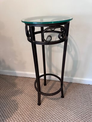 Plant Stand/ Accent Table Is 30” tall and glass top is 12” wide.