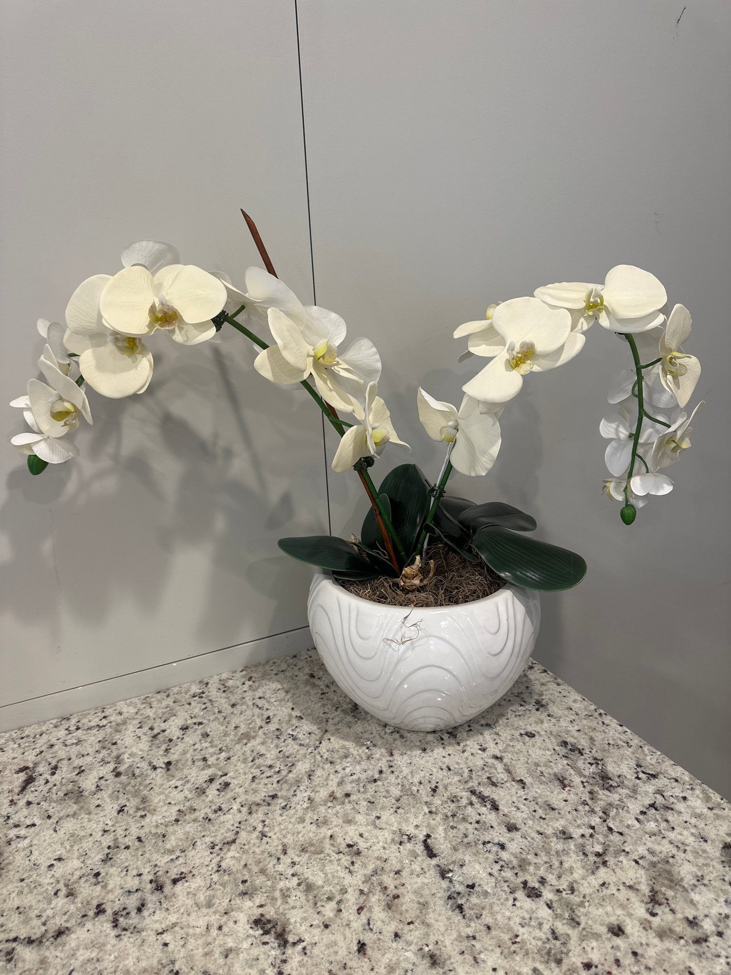 Planter is 10 inches wide and 7 inches high. Overall width including flowers is 27 inches wide and 21 inches high.