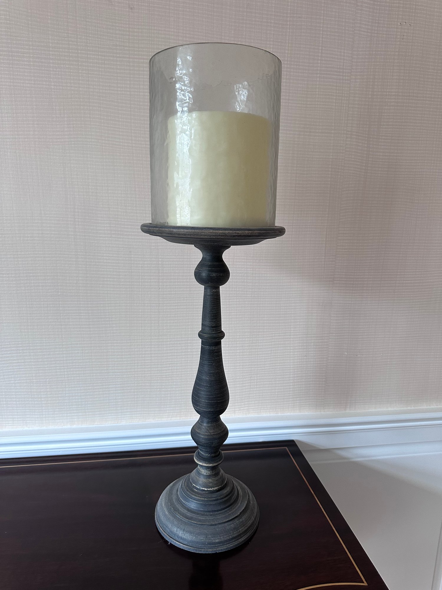 Metal base Pottery Barn Candle Holder is 30" tall.