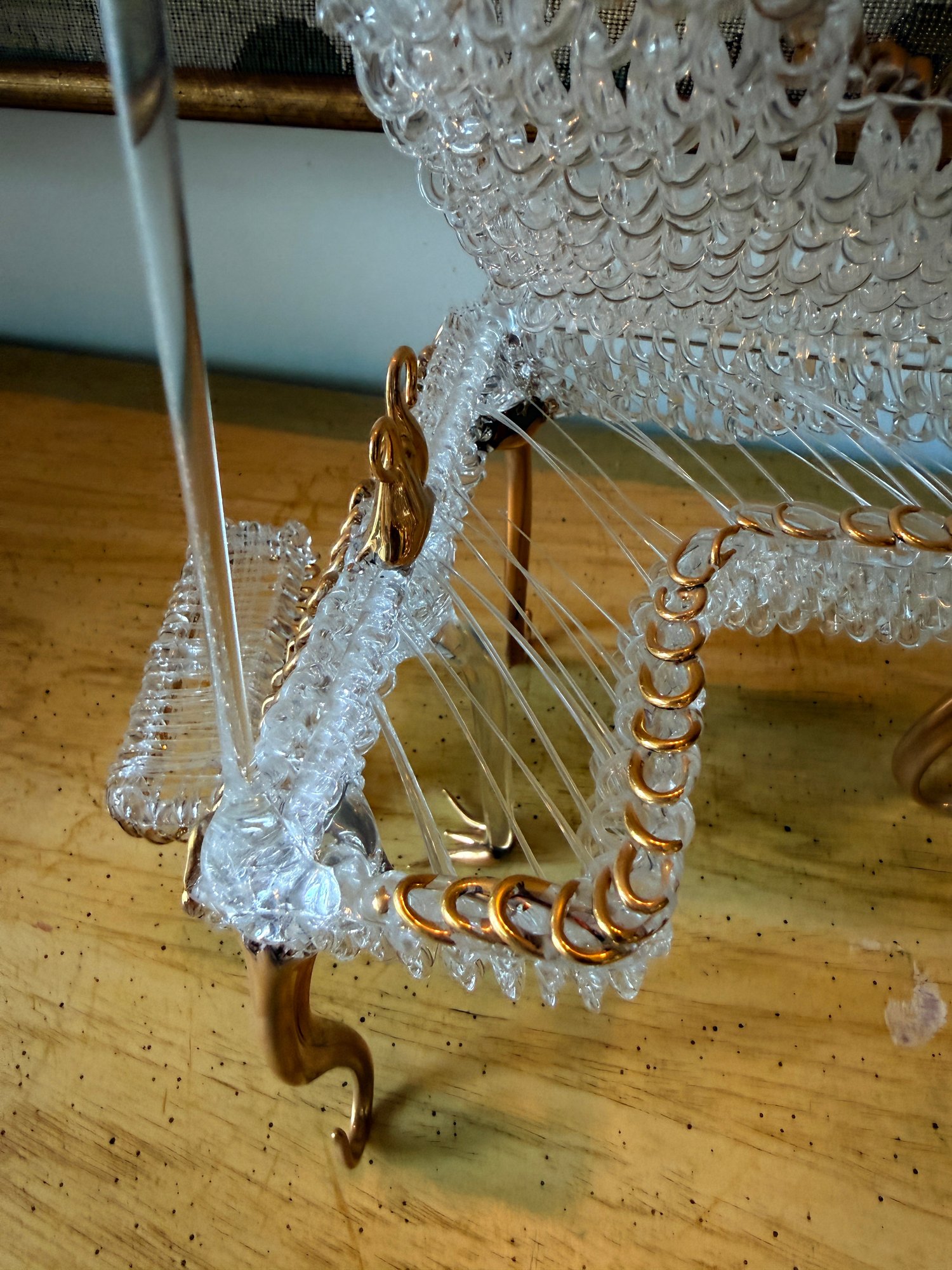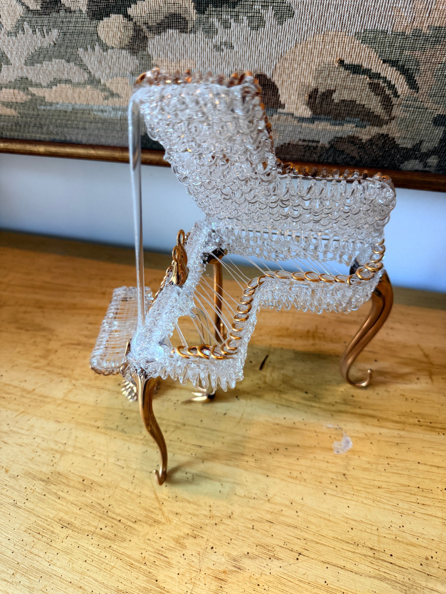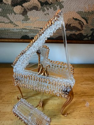 Glass Baron Baby Grand Piano figurine, handcrafted from clear spun glass and accented with gold detailing.