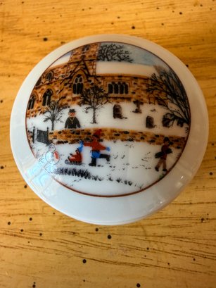 Snowy day decorated Limoges France trinket dish